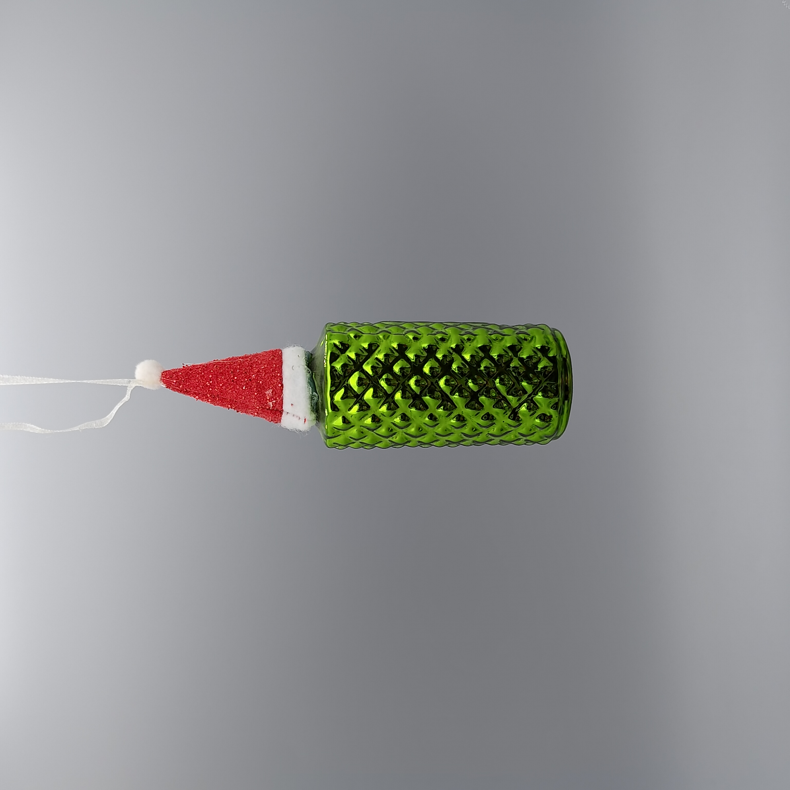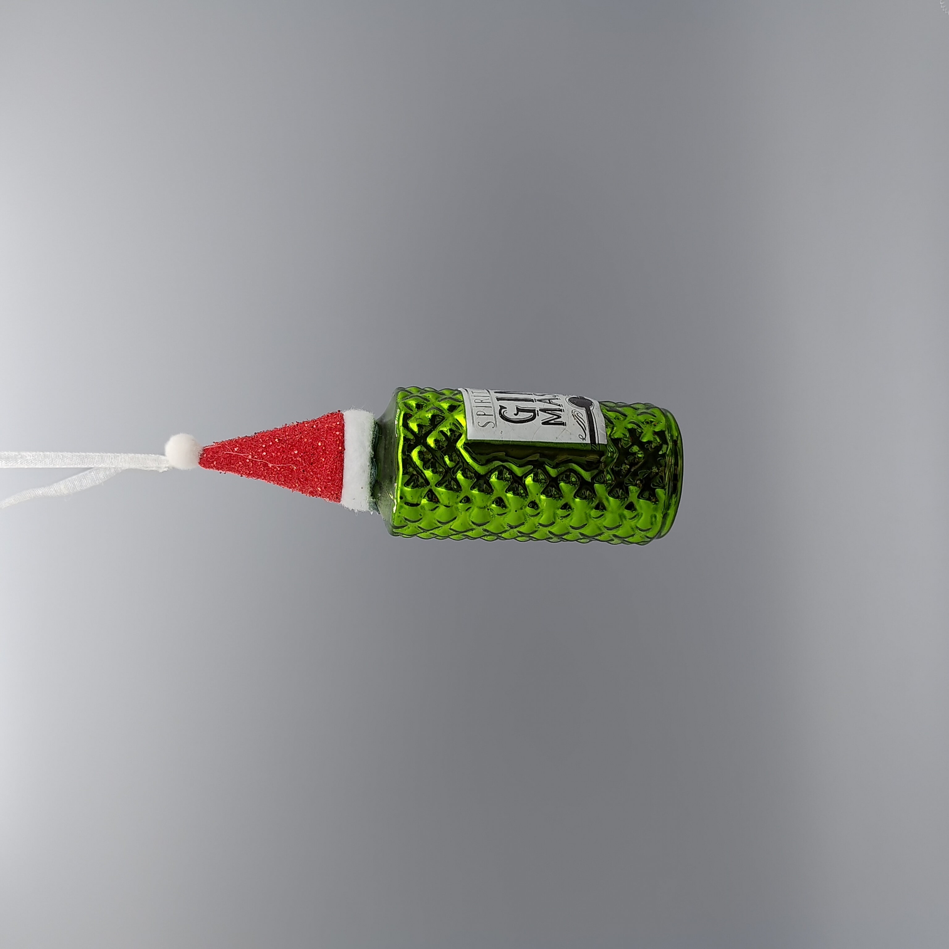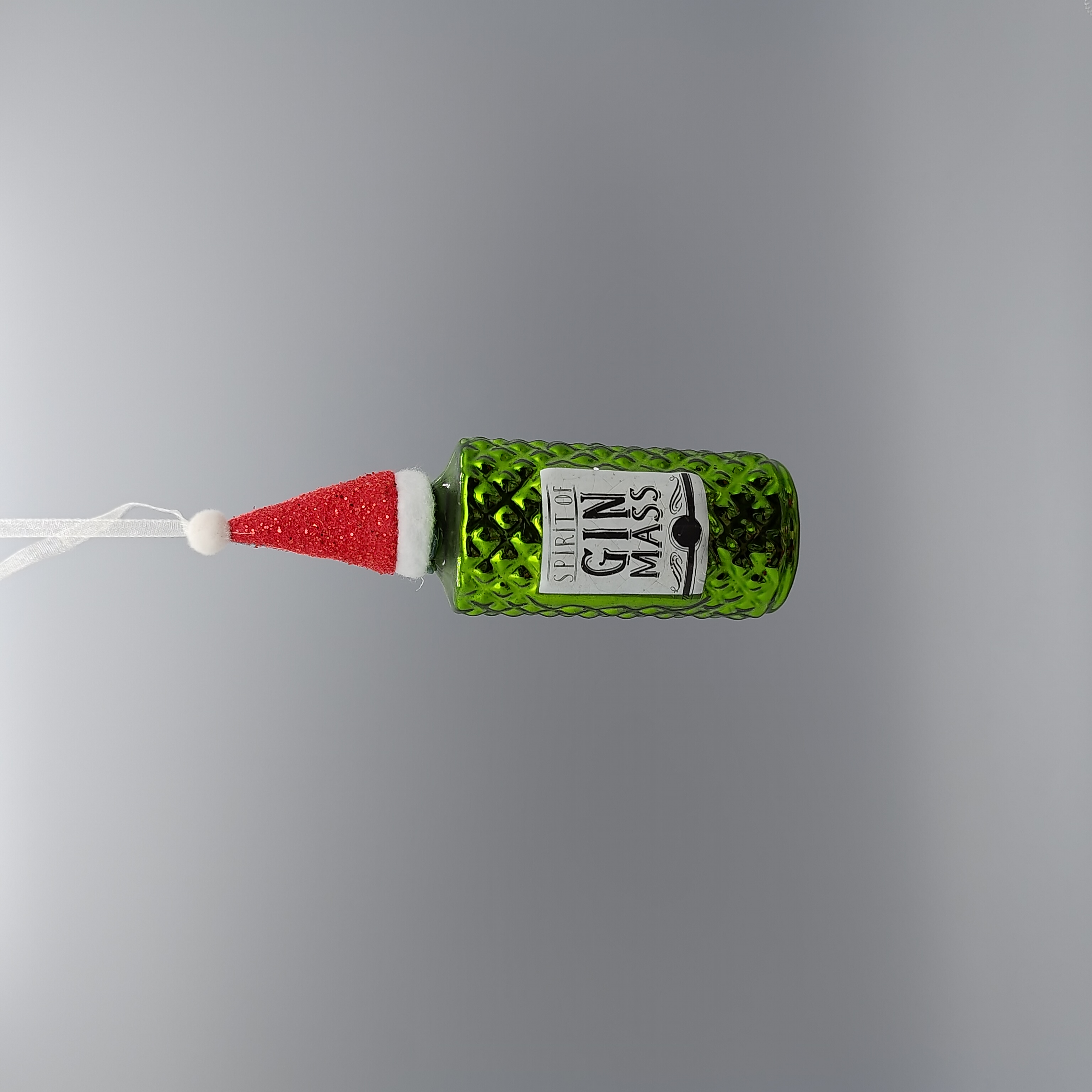 Item Name: High Quality Green Gin Bottle Ornament Christmas Glass Decoration with Sequined Santa Hat Print