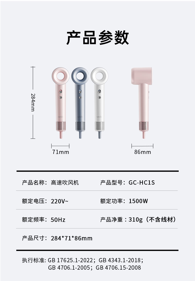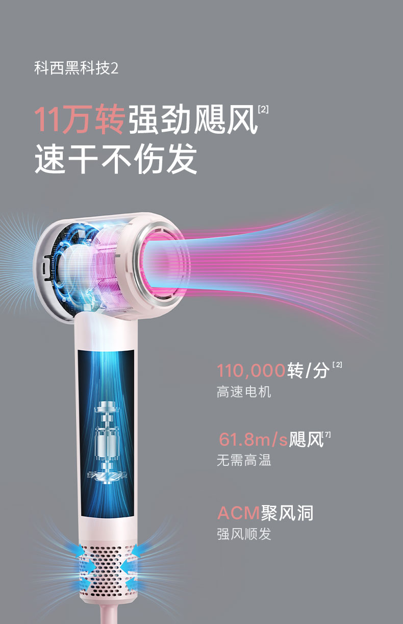 1, 110,000 RPM three-phase high-speed brushless motor, 61.8m/s high-speed air flow, 3 minutes quick dry