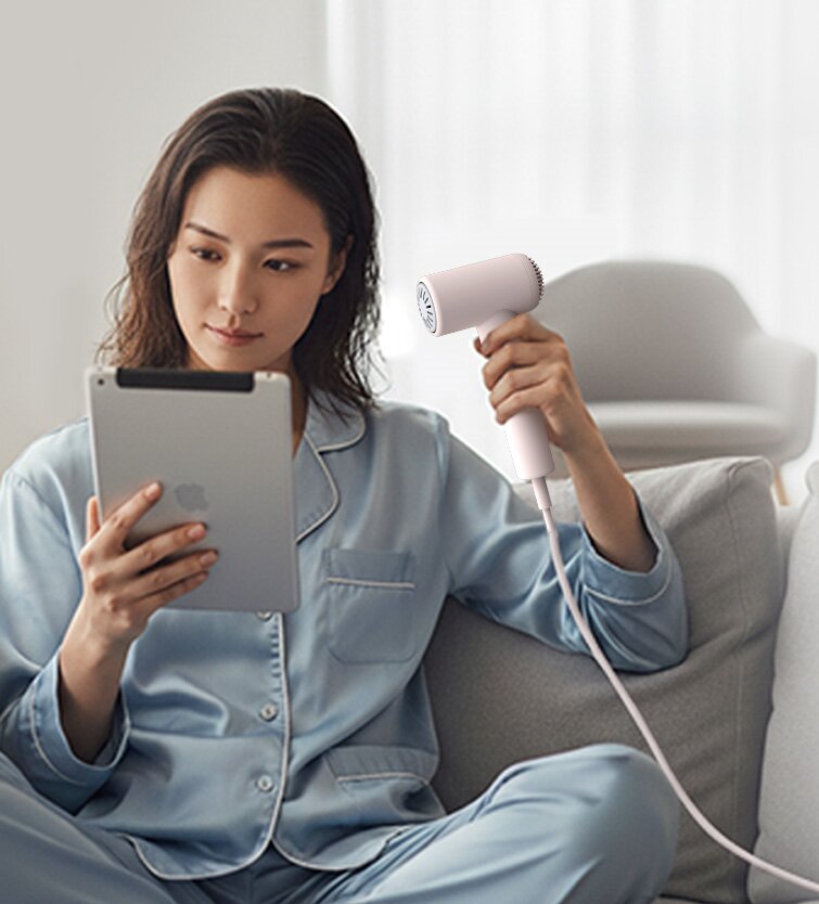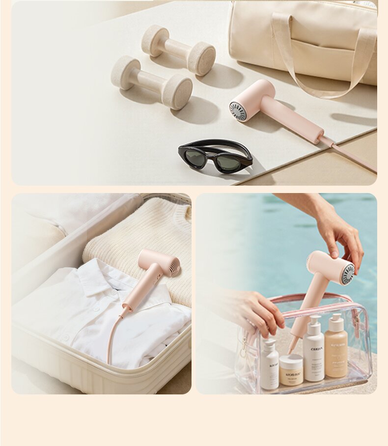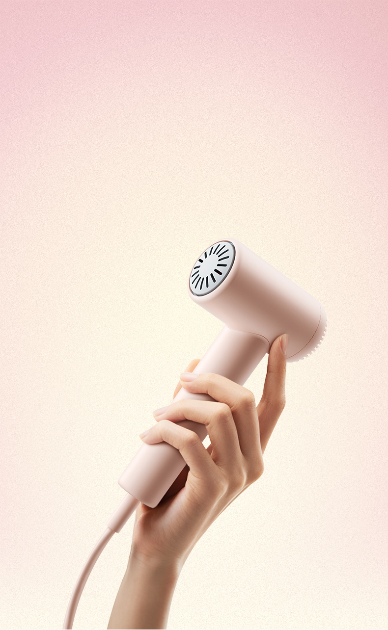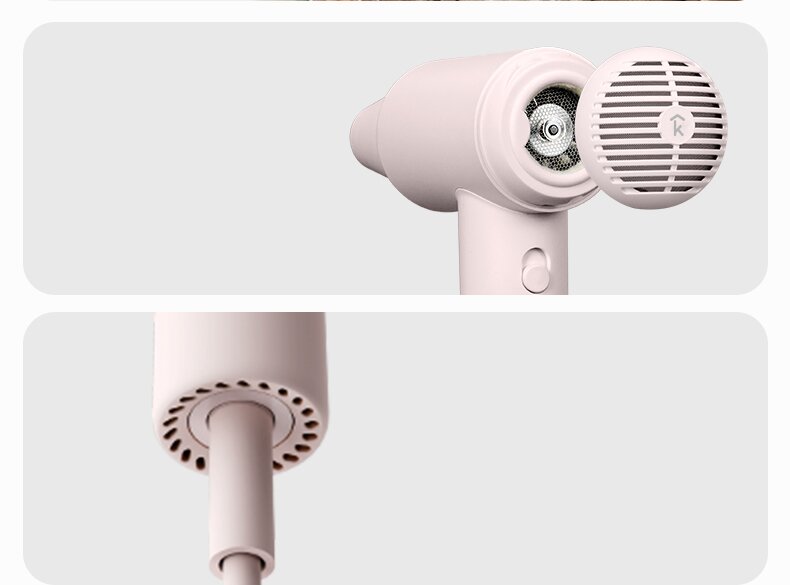5, Automatic hot/cold air circulation, Tri-color temperature indicator ring, Circular breathing light design, 66dB low-noise hair dryer.