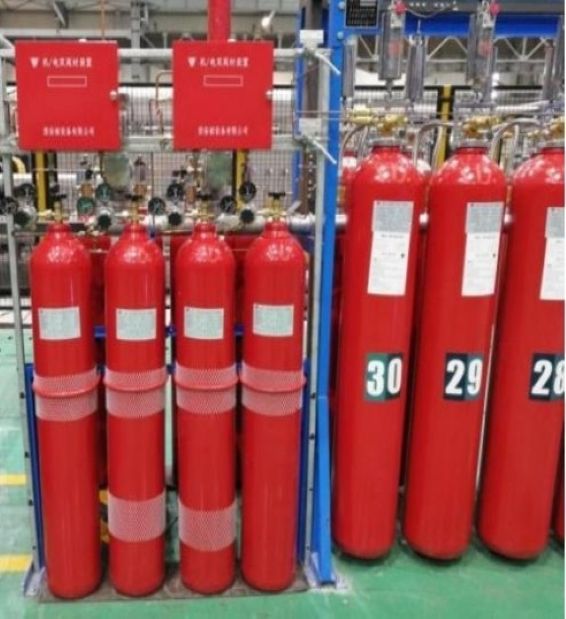 The high-pressure carbon dioxide fire extinguishing system is mainly composed of fire extinguishing agent bottle group, driving gas bottle group, one-way valve, selection valve, driving device, manifold, connecting pipe, nozzle, signal feedback device, safety release device, weighing device, low-leakage high-sealing valve, cylinder rack, etc., with carbon dioxide as the fire extinguishing medium.