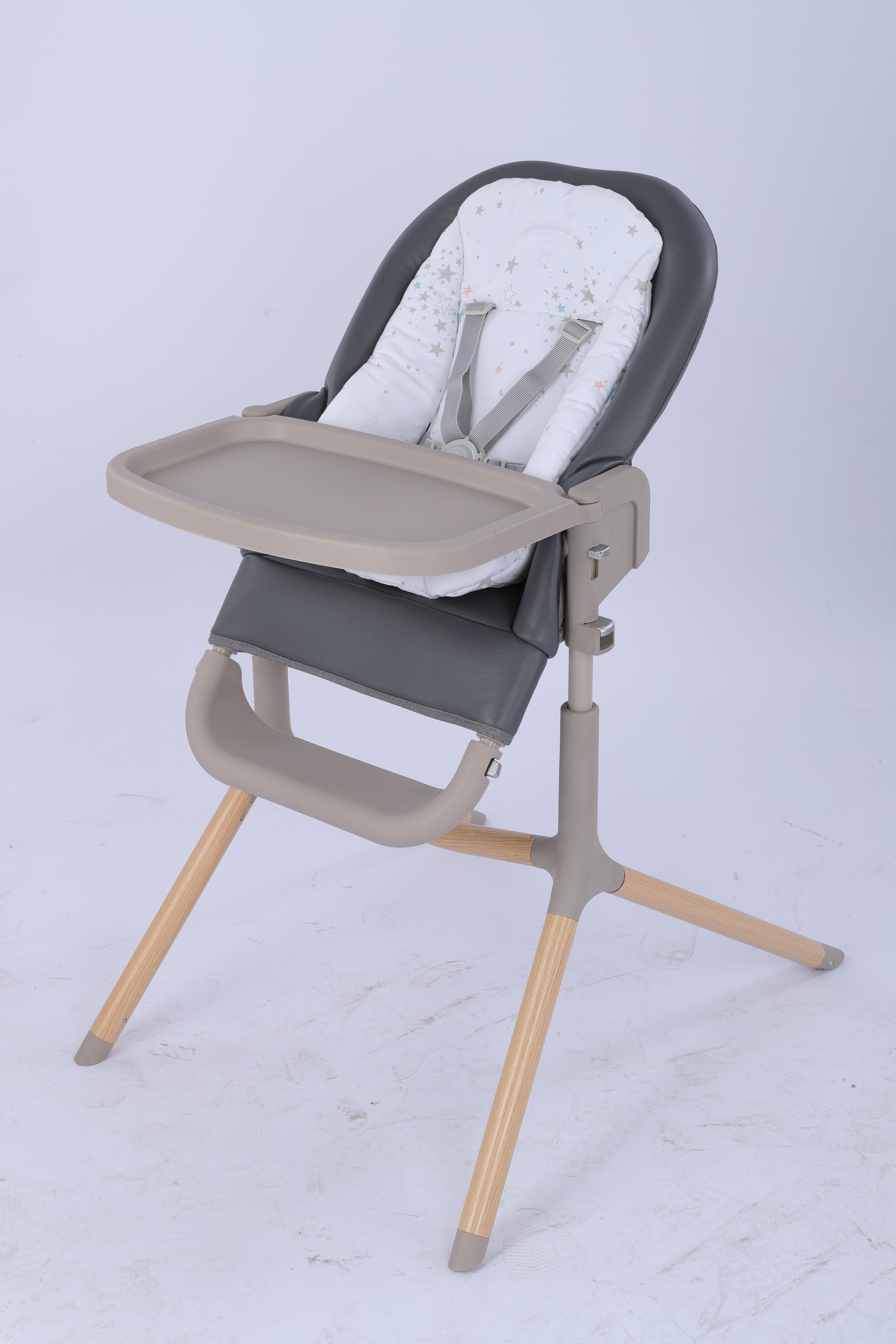 Modern design match with funiture 3 positions recline, 5 levels of height adjustment Removable seat cover Once side open tray, with secondary tray