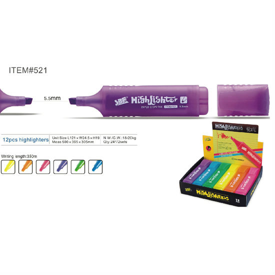 • 12pcs highlighter with 6pcs in color box, 1C silk printing for barrel