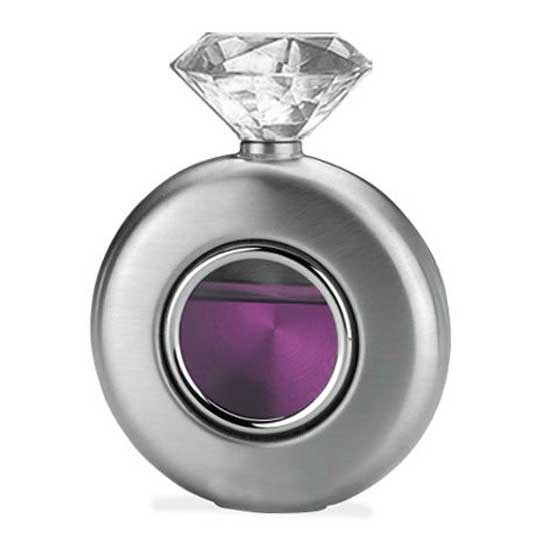 This hip flask is made of stainless steel and comes in a neat round shape. The dazzling diamond covering lid showcases an elegant and luxurious look. This hip flask is an ideal addition to complete your bar accessories.