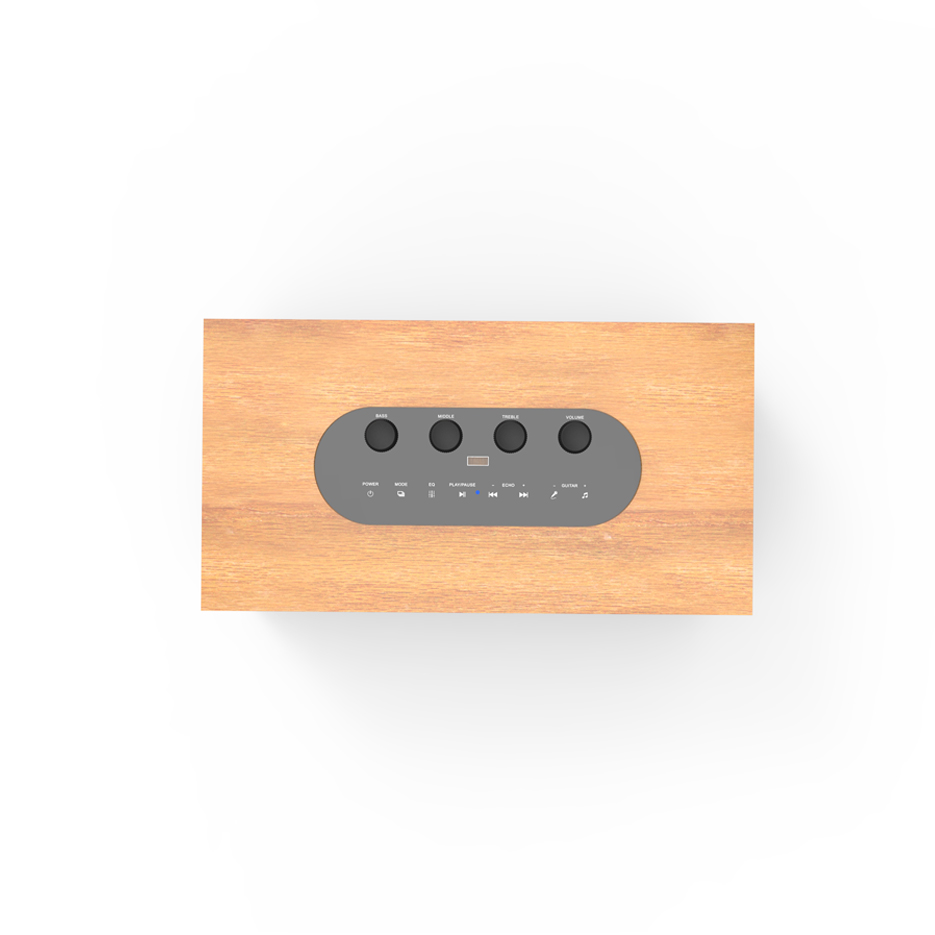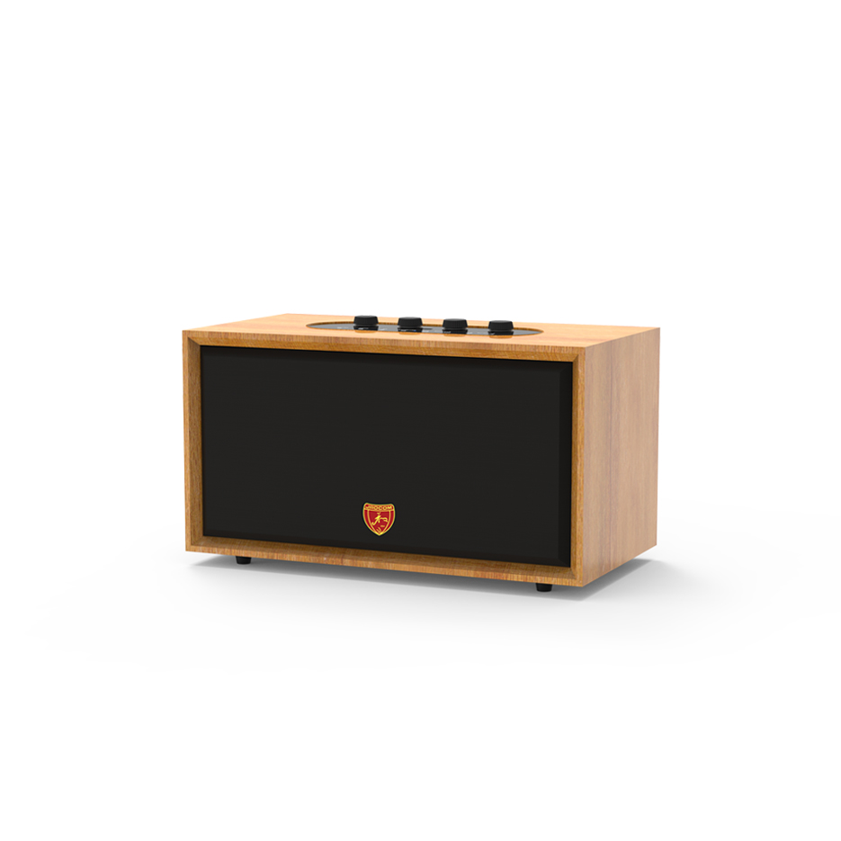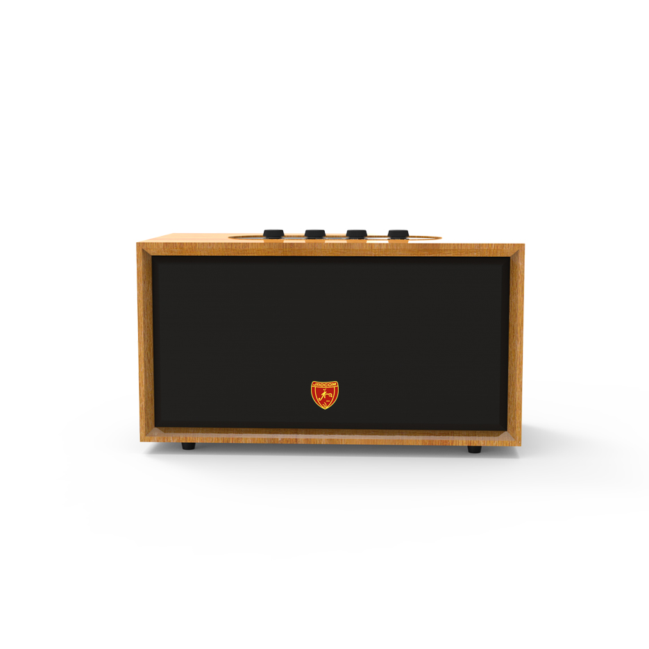 Stereo speaker with a retro design and PU finish, making it perfect for any occasion or setting. The PU finish combined with oxidized metal details achieves an ideal balance between elegance and sophistication.