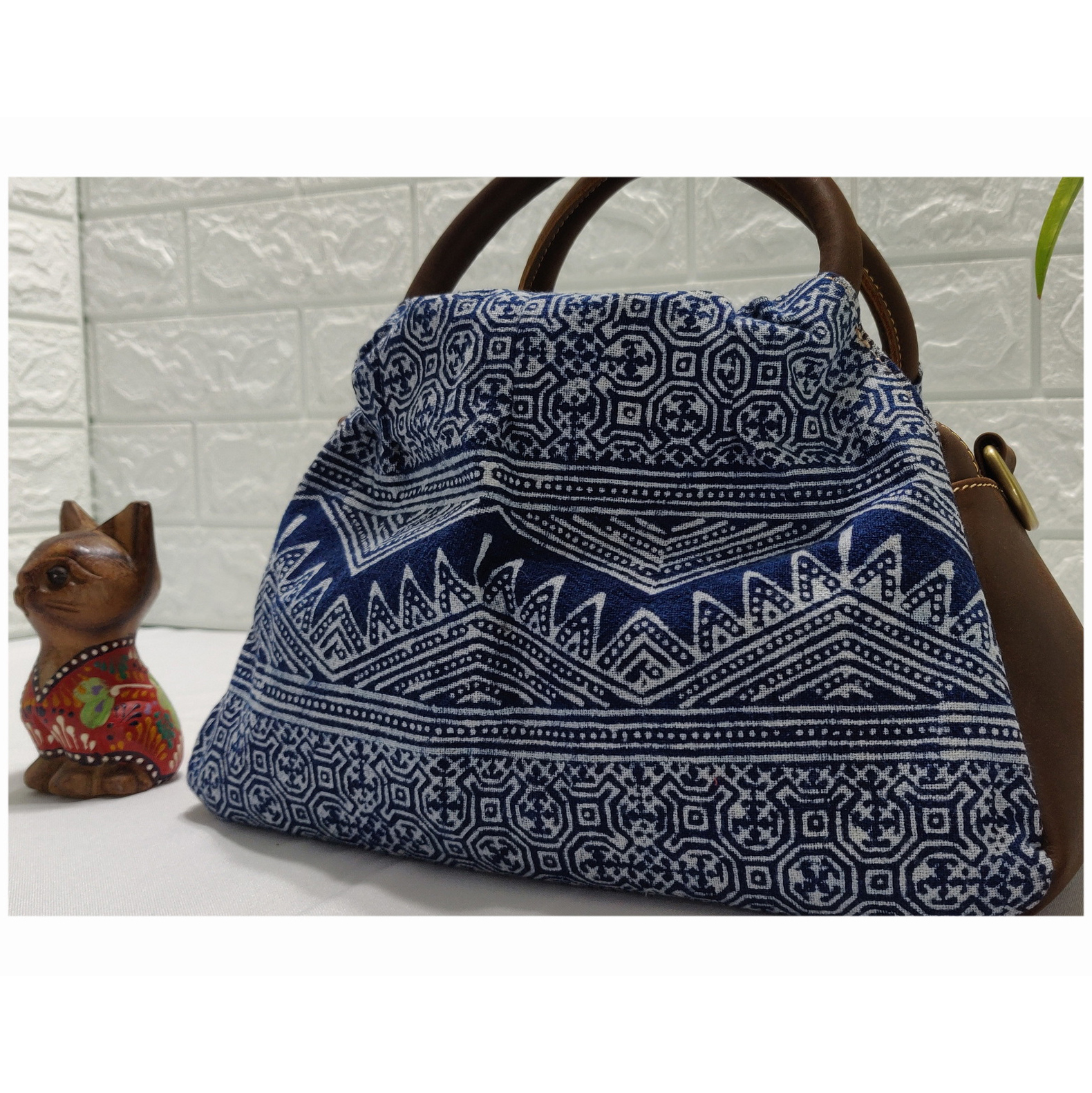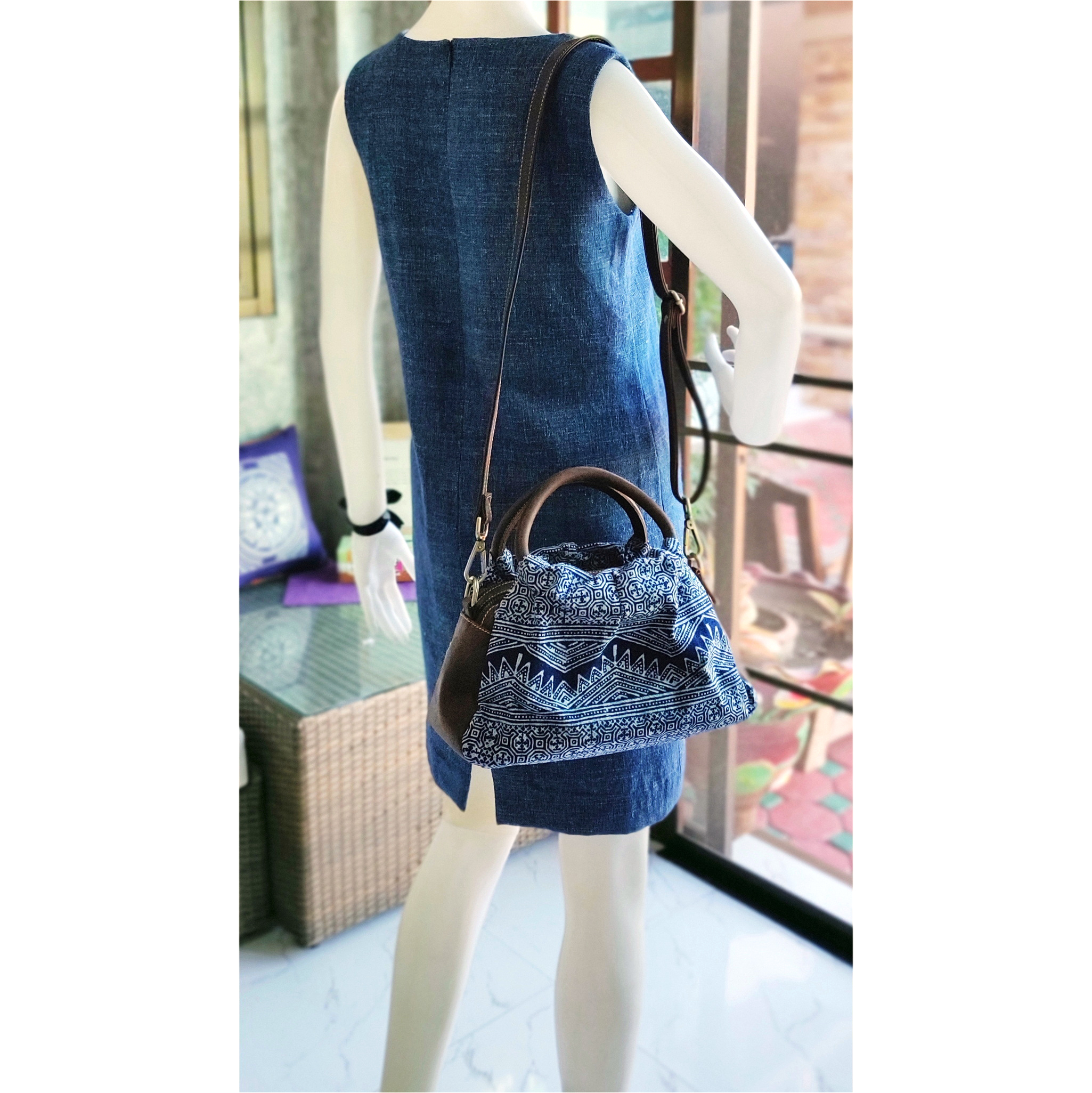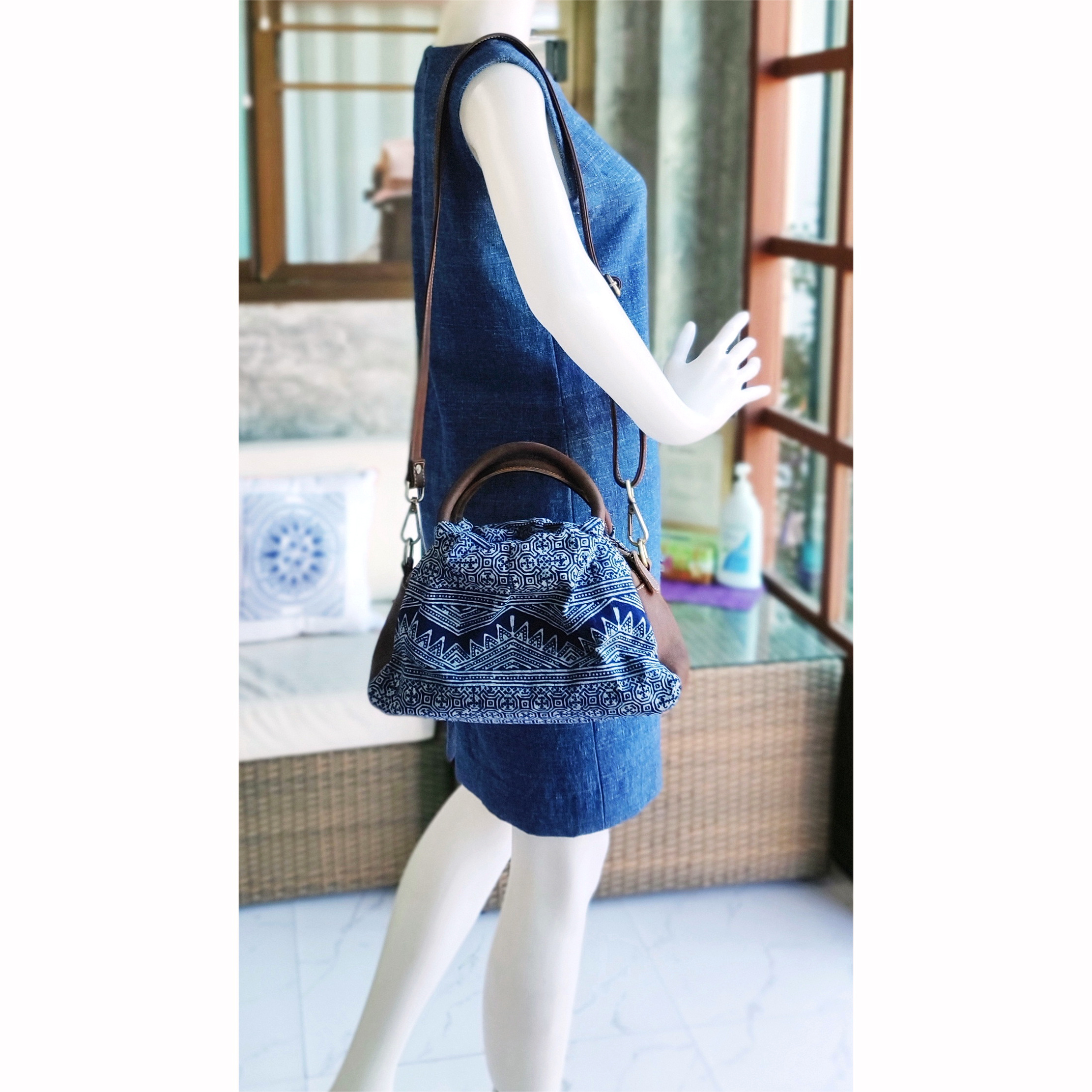 This hobo bag is made of 100% cotton with leather trim and designed in the Hmong style pattern. It can be used as a shoulder bag, crossbody bag or handbag with durable handles and removable straps. The spacious compartment holds essentials such as notebooks, water bottles, compact umbrellas and so on. It is versatile and easy to match for daily occasions.