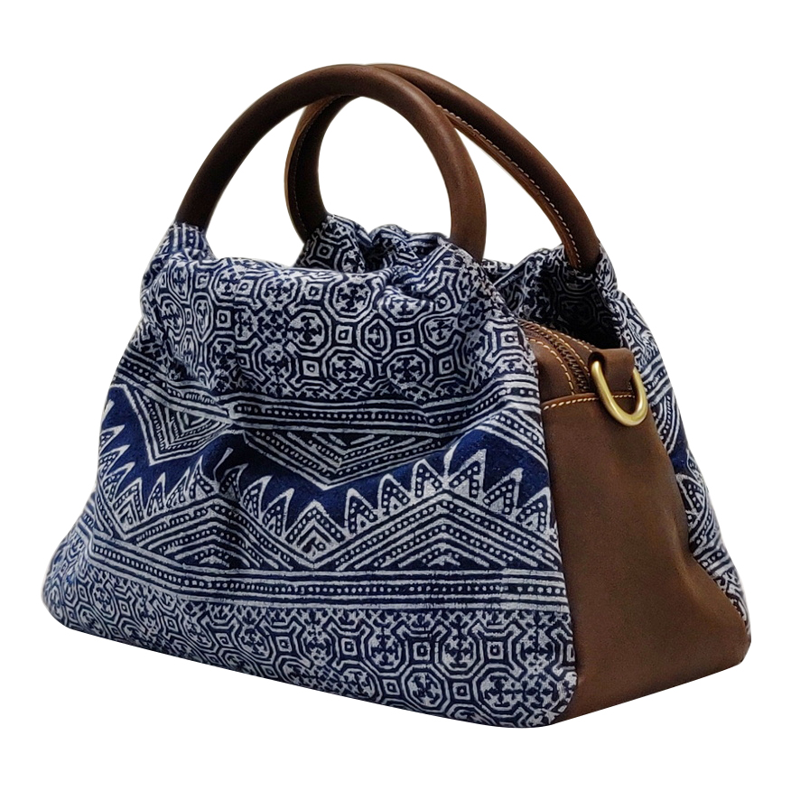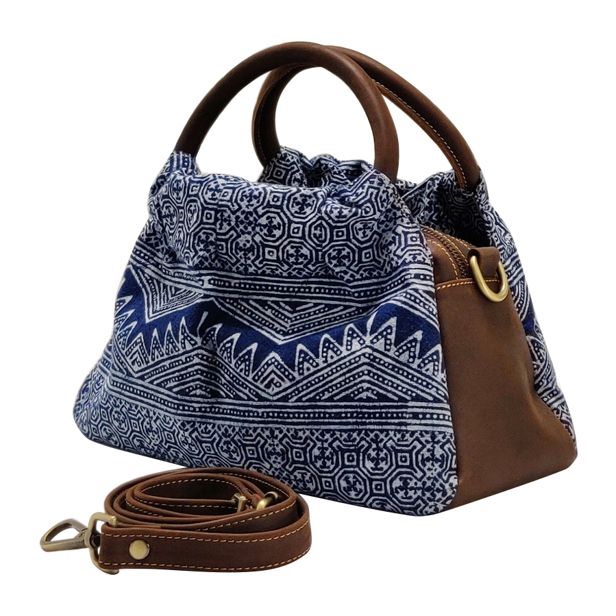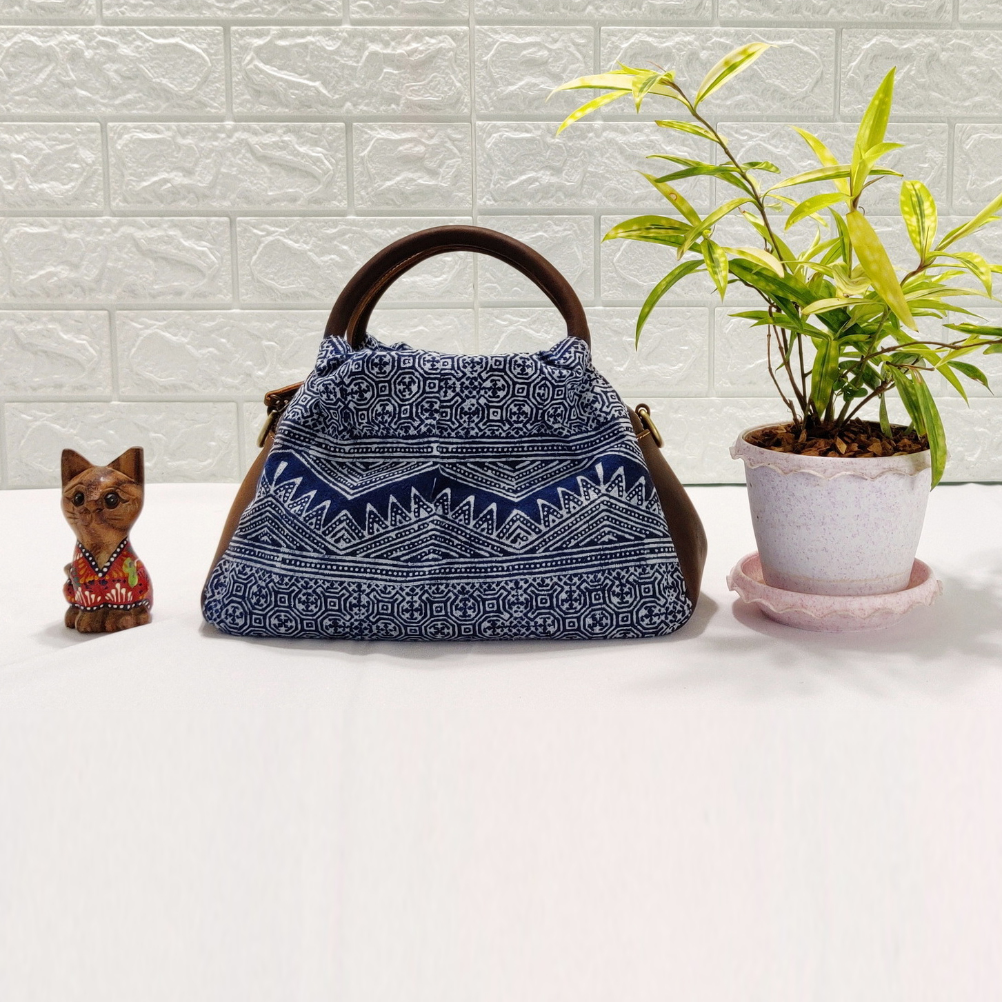 This hobo bag is made of 100% cotton with leather trim and designed in the Hmong style pattern. It can be used as a shoulder bag, crossbody bag or handbag with durable handles and removable straps. The spacious compartment holds essentials such as notebooks, water bottles, compact umbrellas and so on. It is versatile and easy to match for daily occasions.