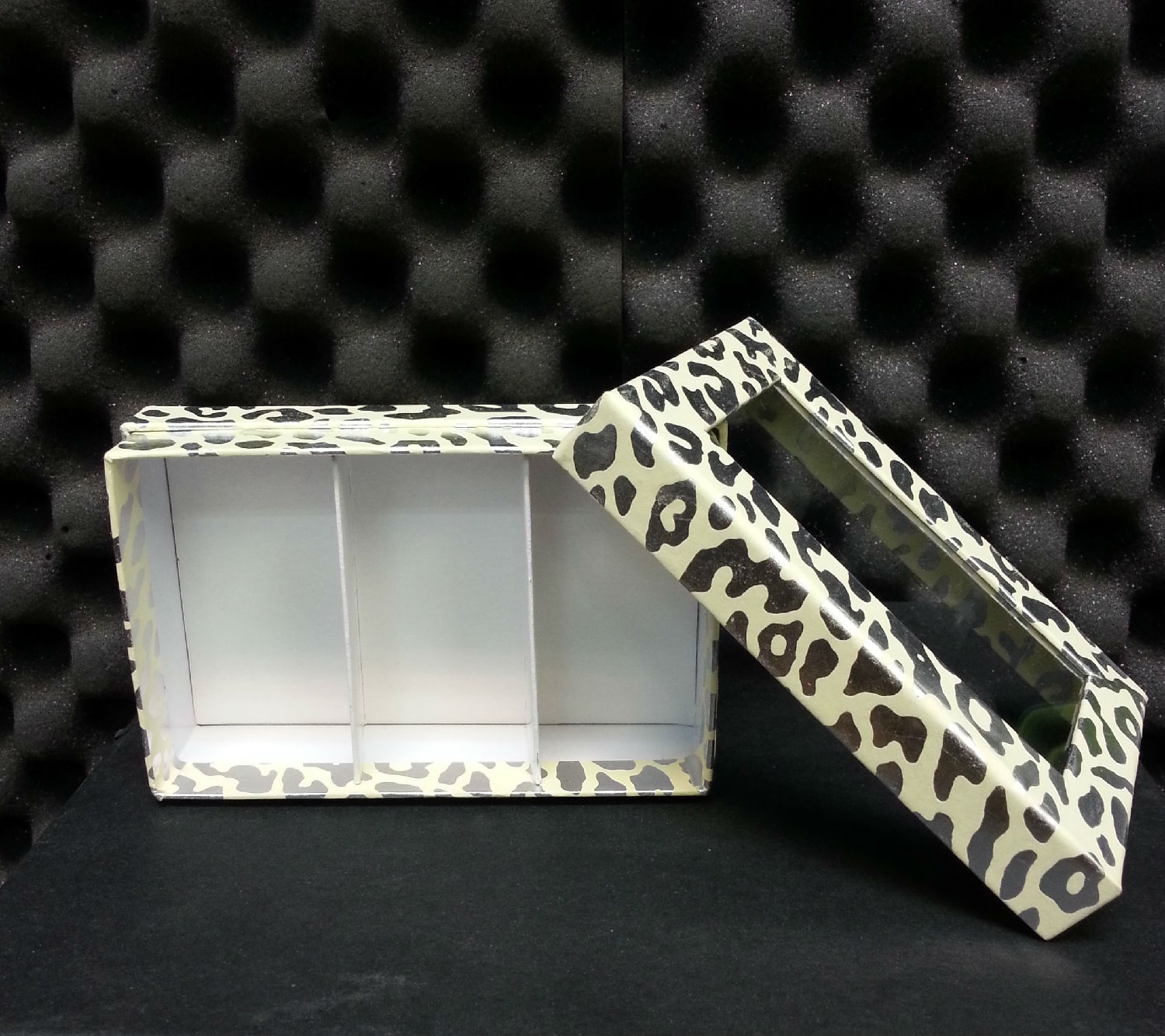 This rectangular packaging box comes in a two-piece construction. It is finely crafted fro an applealing look and a sturdy construction. The 3 compartments holds products neatly in place to keep them safe during transportation. This rectangular box suits well with different types of finished goods.