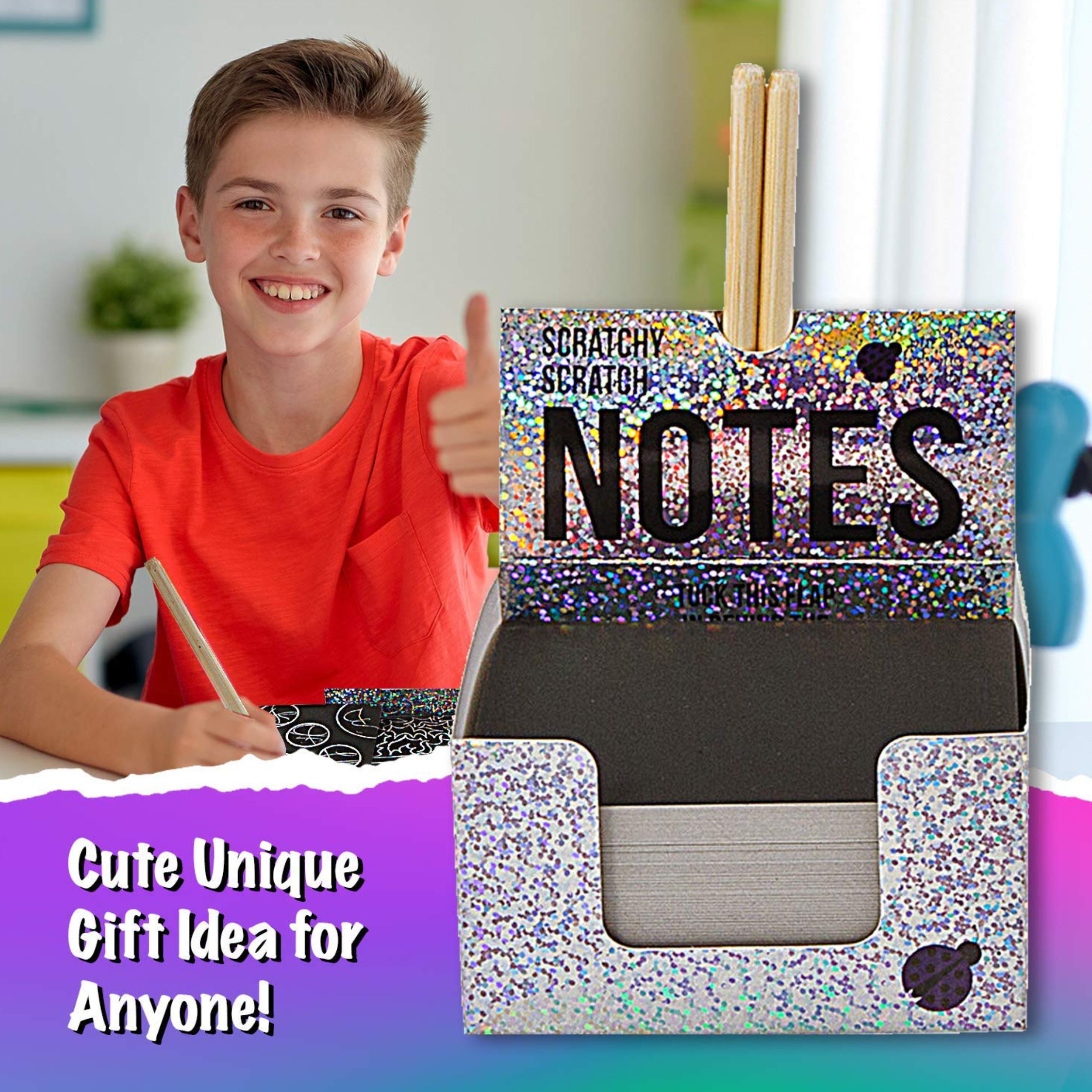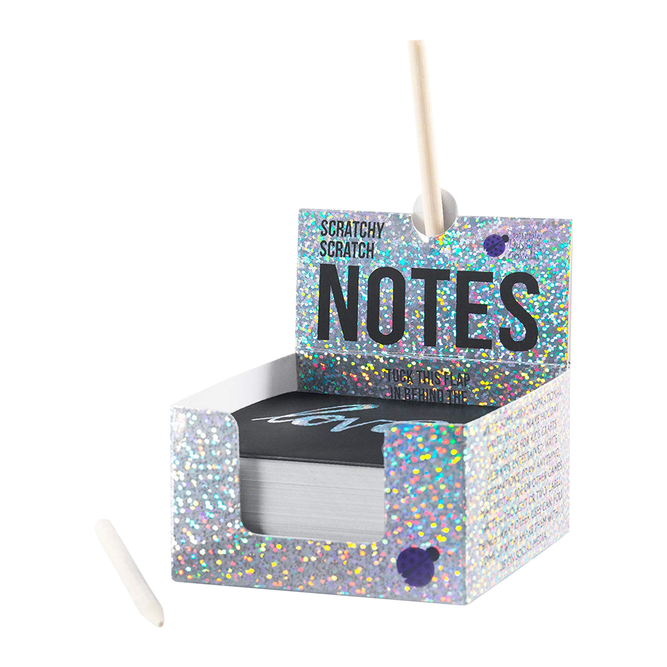 STYLISH DESIGN - This set of 150 scratch paper notes is as cute as it is fun, with shiny and eye-catching notecards and a hologram design desktop dispenser that has a convenient holder for a stylus