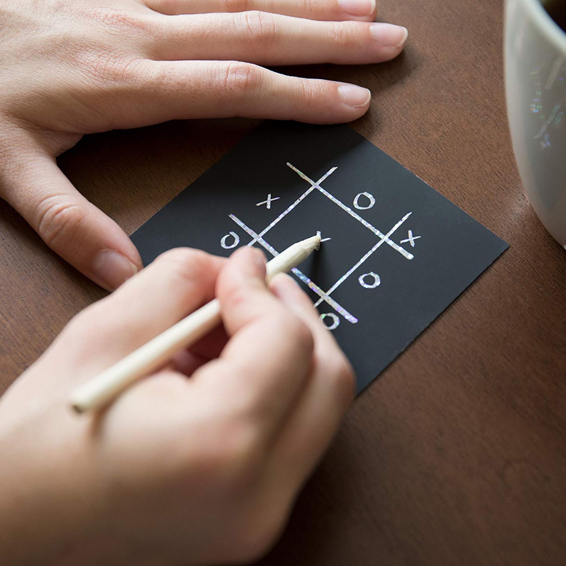 MANY USES - Use this black scratch off paper as an adult doodle pad, for kids crafts, to write thank you cards or I love you notes, to jot to do lists, as a unique office memo or to play tic tac toe