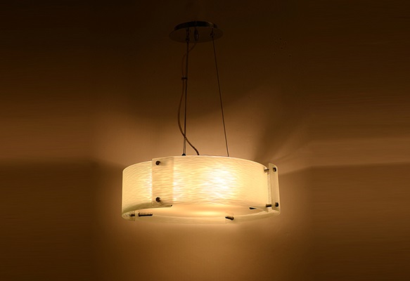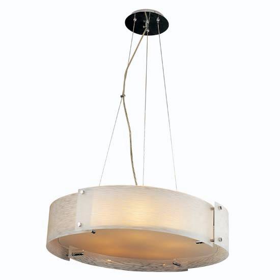 This pendant lamp boasts a curved fabric shade with decorative chrome hardwares. The simple and unadorned forms give this hanging light a touch of understated glamor. This lamp certainly is a great item to accent any room in your home.
