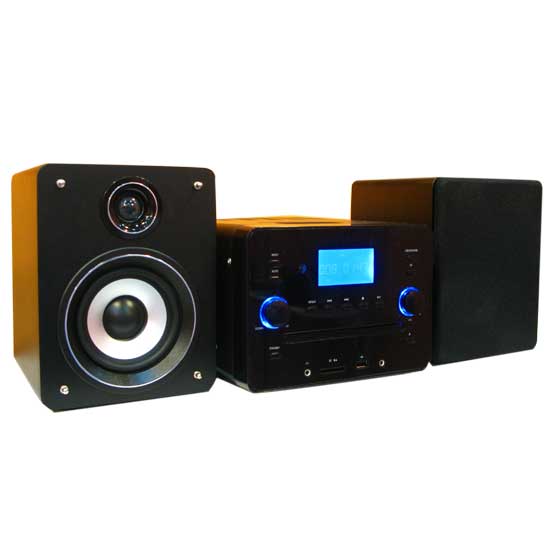 This home hi-fi system comes with LED indicators on the display and 2 control knobs. The control buttons are neatly arranged for convenient control. This home audio equipment supports SD cards, DVDs, VCDs, CDs, etc.