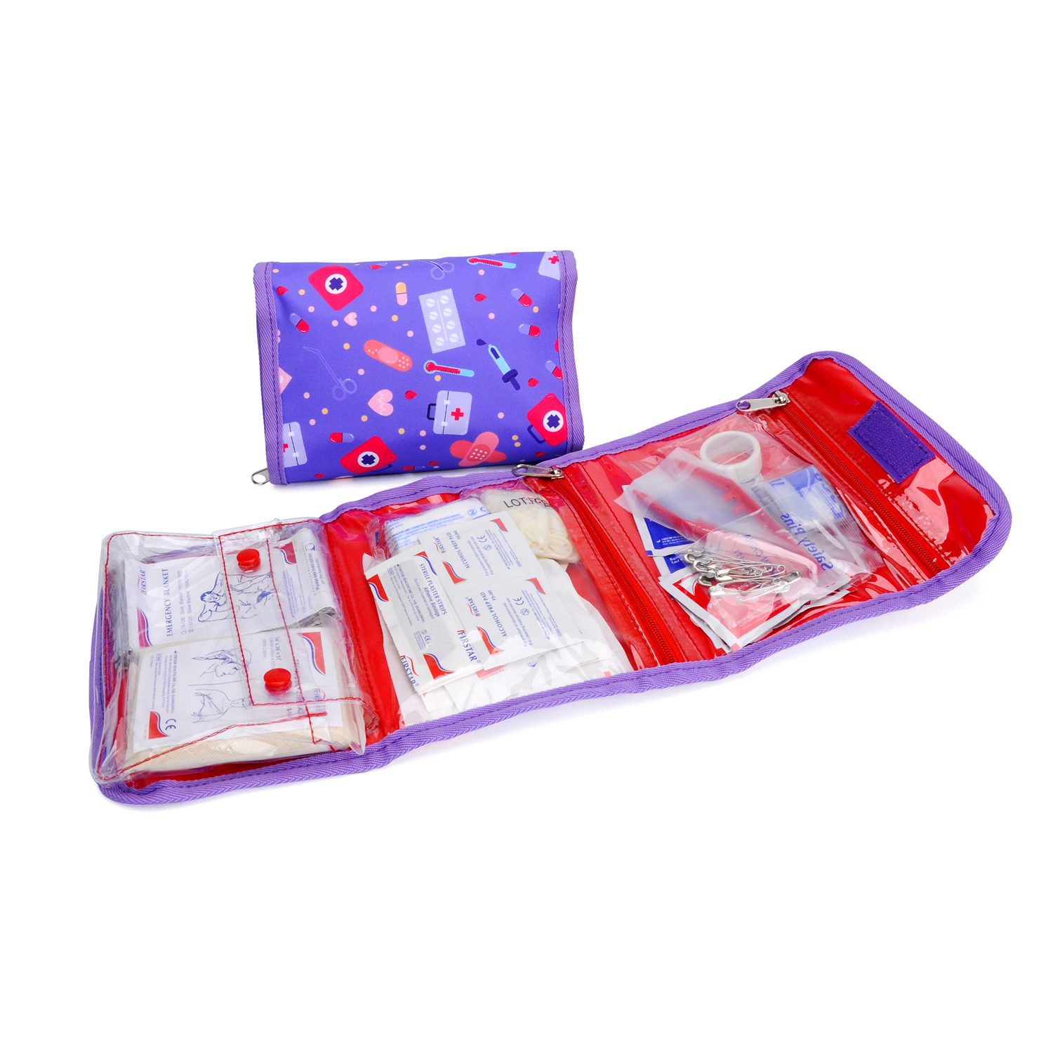 This first aid kit is designed for outdoor. It contains specific supplies you might need when you are not at home. Including a CPR shield and a survival blanket to keep the patient warm, this is an excellent present or promotional product.