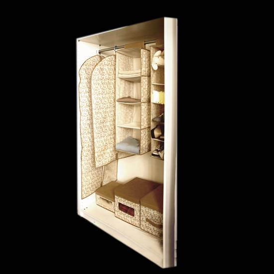 This is a printed non-woven fabric closet range. It is in modern design with motif pattern. It allows users to store a range of items in an organized way. Its classic color makes it easily fit in any kind of home's design.