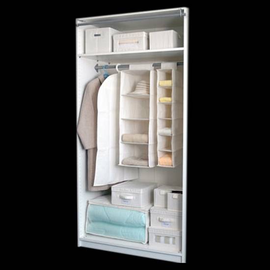 This is a home storage items accompanies with boxes which can as well be placed on an iron bar and a board installed inside the closet. It is with modern design and users can store a range of items in an organized way.