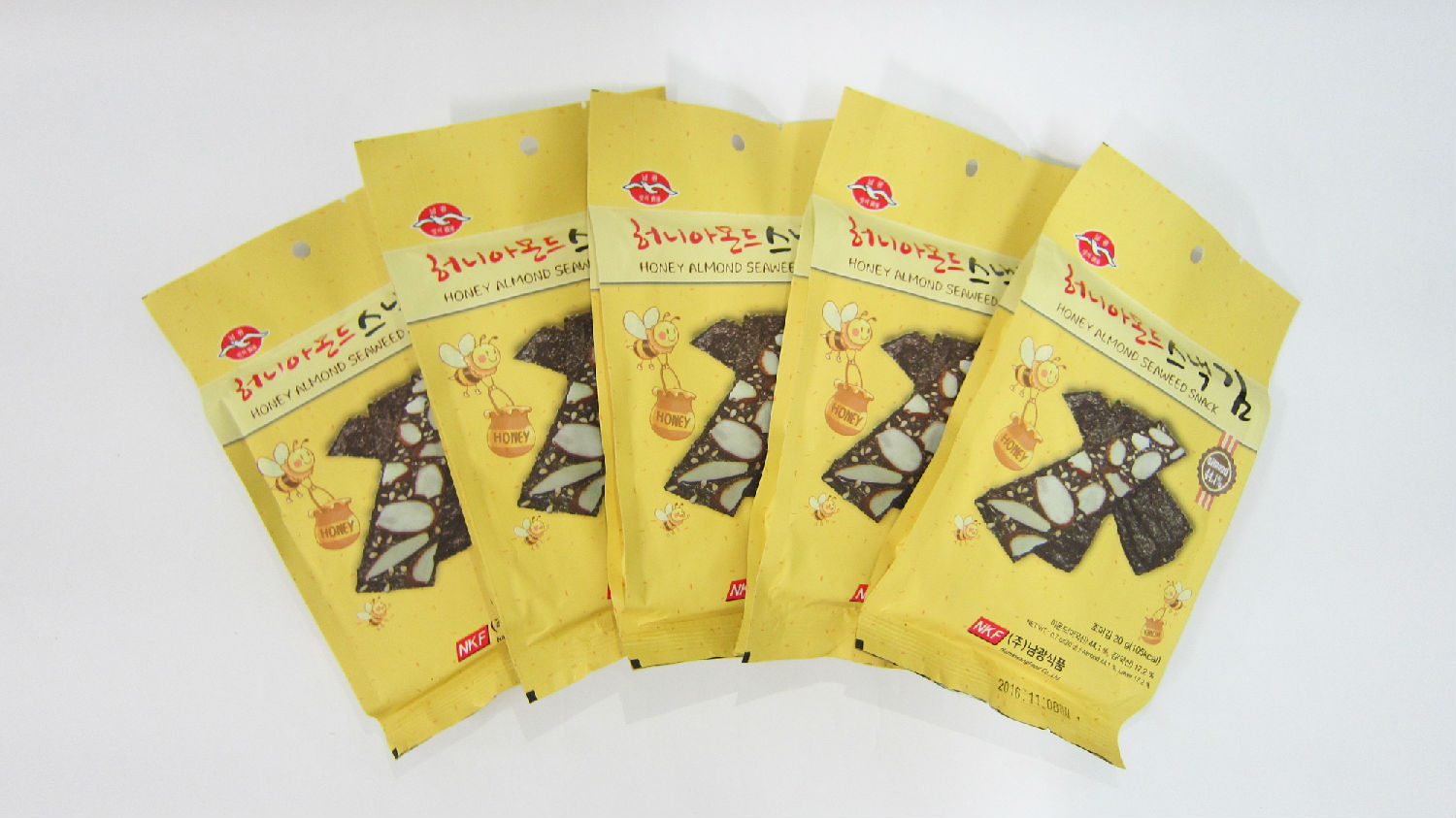This laver snack is seasoned with laver-matching sweet sauce adding nutrition with sesame. It is good for nutritious snack for children and relish.