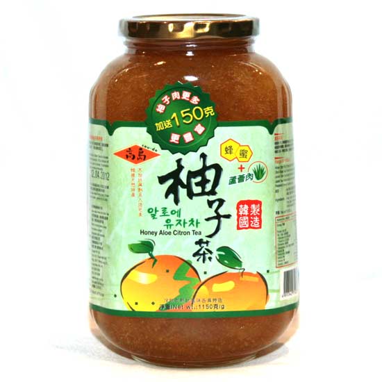 This Korean-style citron marmalade contains honey and aloe for added health benefits. It is used for making Korean-style honey citron tea. It has a sweet, tangy flavour with a refreshing citrus aroma. Simply put a few tablespoons of marmalade in hot water and stir until even.