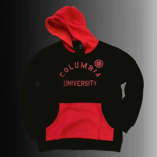 As shown is a men's tee in a young and sporty style. The tee comes in black, highlighted by a sharp red hood and big front pocket. A print is added at chest for enhanced character.