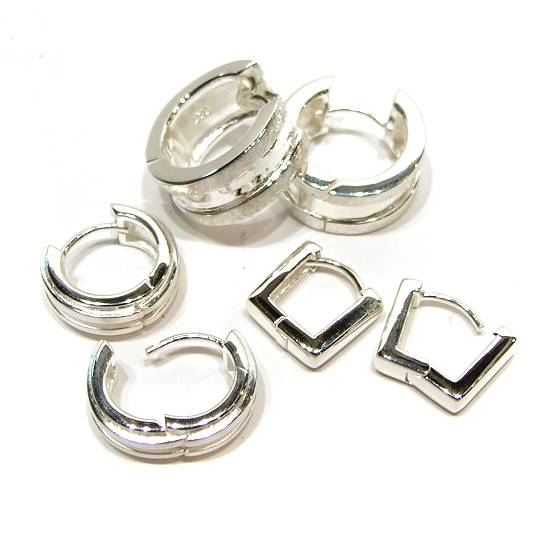 These earrings are made in 925 silver without gemstones as embellishments. They are of the company's own design, some of them are with bright polish finish and the others with satin finish. The hoop design avoids falling from the wearer's ears.