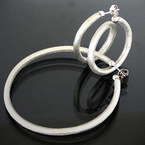 Pictured is a pair of earrings made with quality eco-leather. The hoop earrings bring an urban chic style to your daily look. The ends are made with either 18K gold or 925 sterling silver.