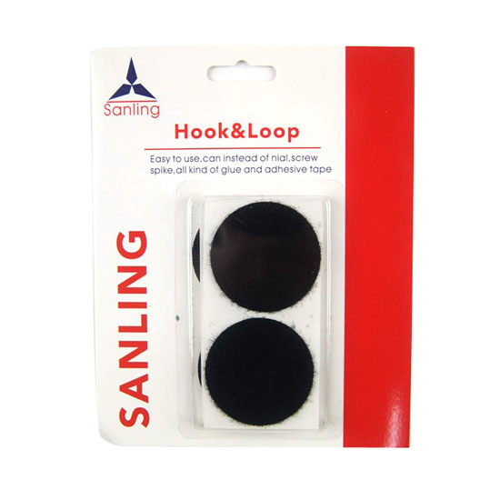 This black hoop-and-loop fastener tape is designed in a round shape. The quality nylon material promises a long service life. This nylon hoop-and-loop fastener tape is easy and convenient to use.