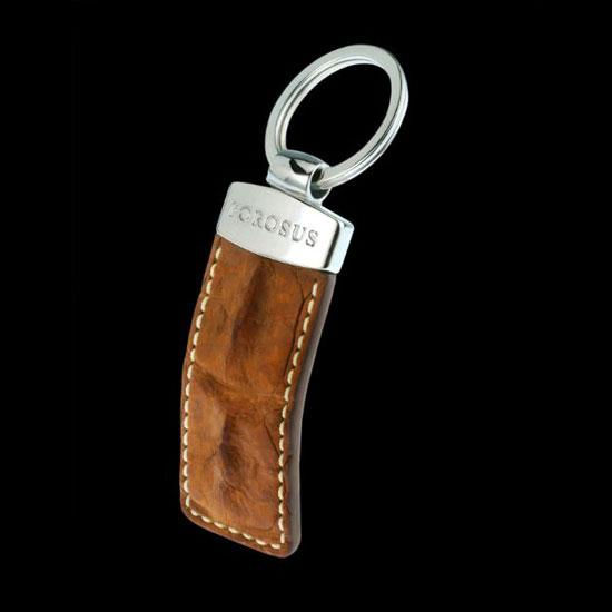 The keychain comes with a hornback leather strap. The latter exhibits appealing shades of brown. It is also done with delicate stitched details.