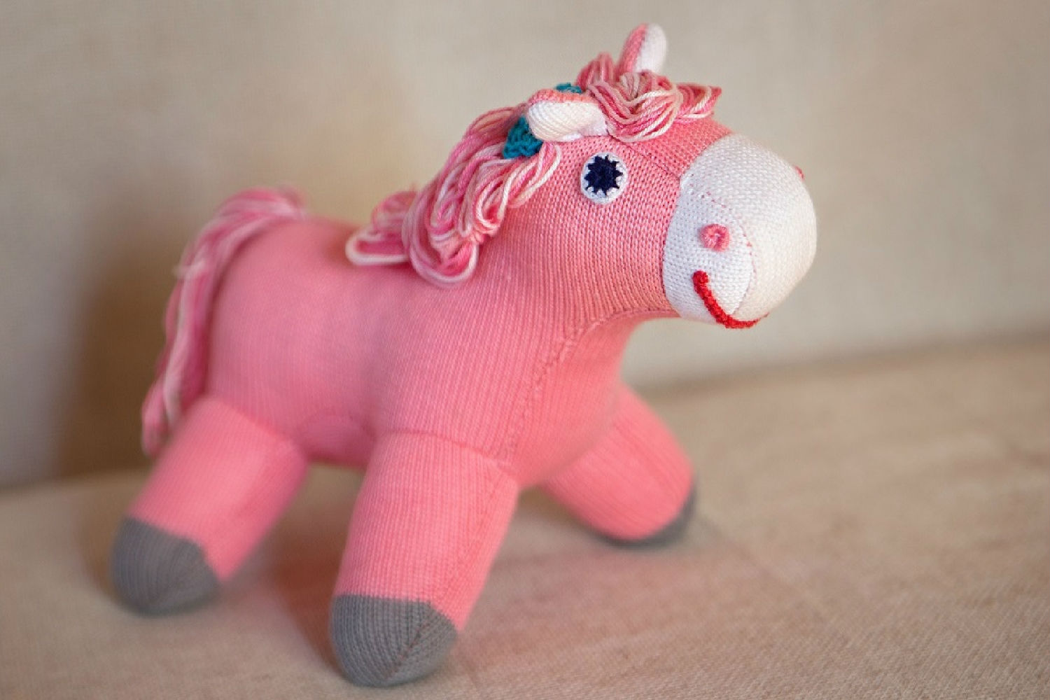 Knitted toy is made of natural yarn, does not cause allergic reactions and pleasant to touch.