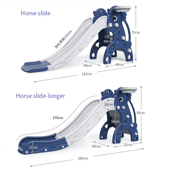 Horse slide is with safety and friendly material and cute design, two slide-length available, smooth edge, and easily assembly, reasonable price, so it has become a very popular kids playing toys for indoor playground.