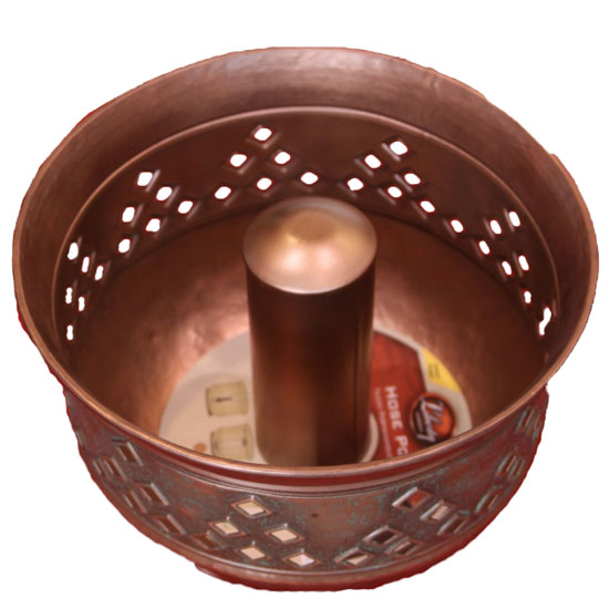 This is an exquisite copper-plated hose pot. Instead of leaving your hose in a tangled mess, use this delicate hose pot to keep it smartly organized and out of sight. This hose storage pot is also specially designed with numerous drainage holes on the body to keep the inside dry.