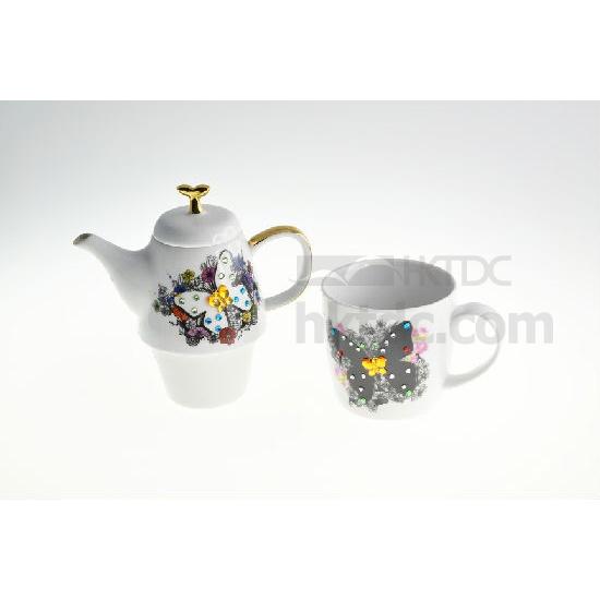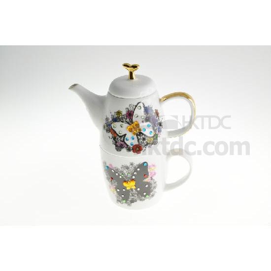 Hot Product Porcelain Beautiful Butterfly Teapot Set with Swarovski Crystals