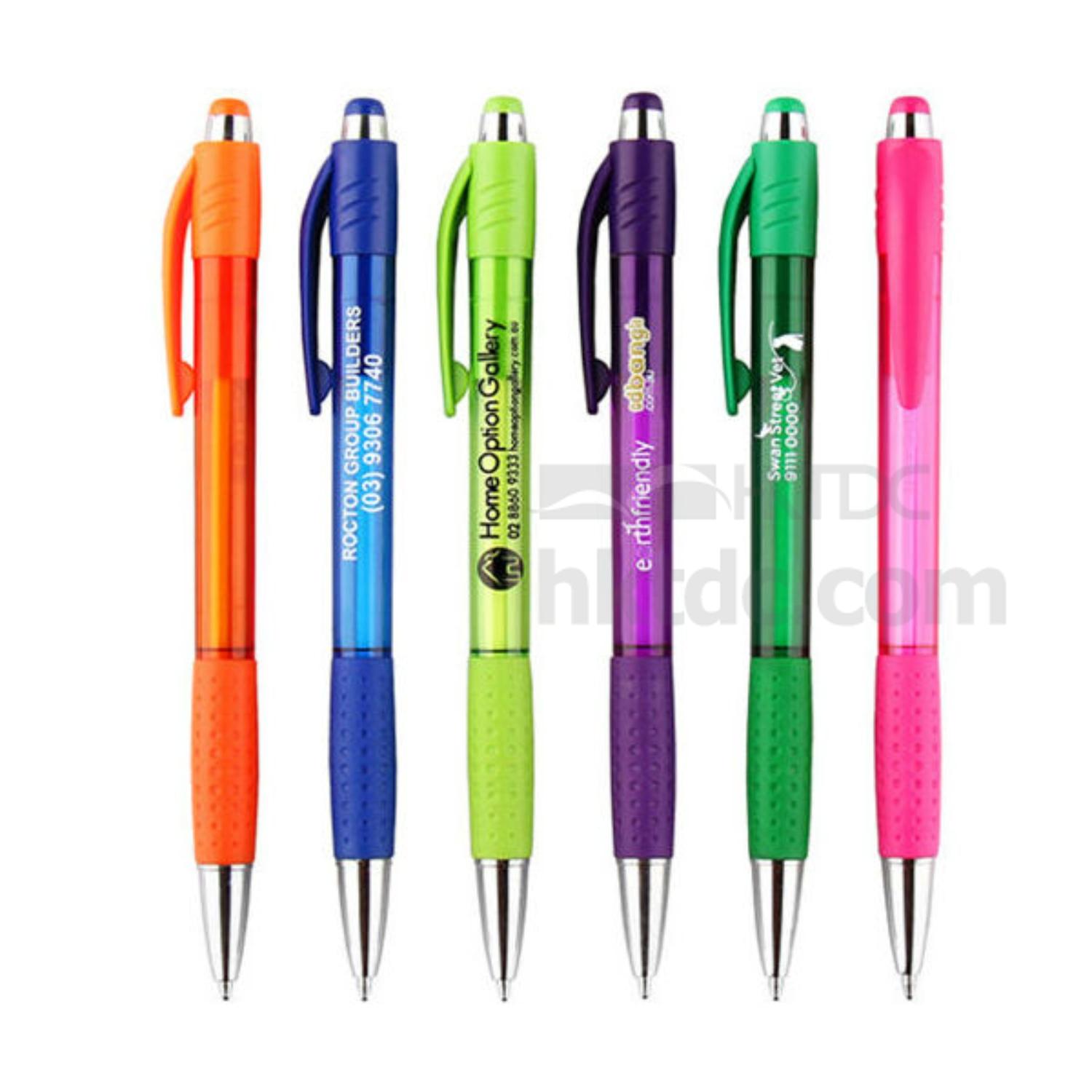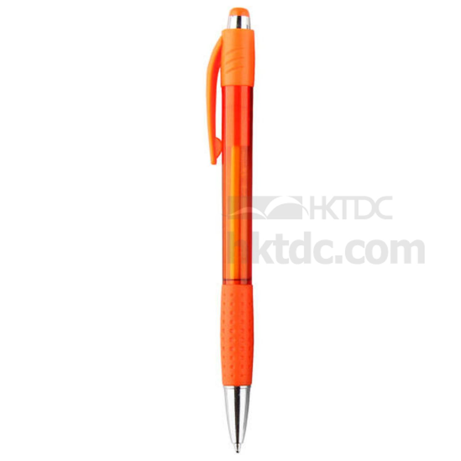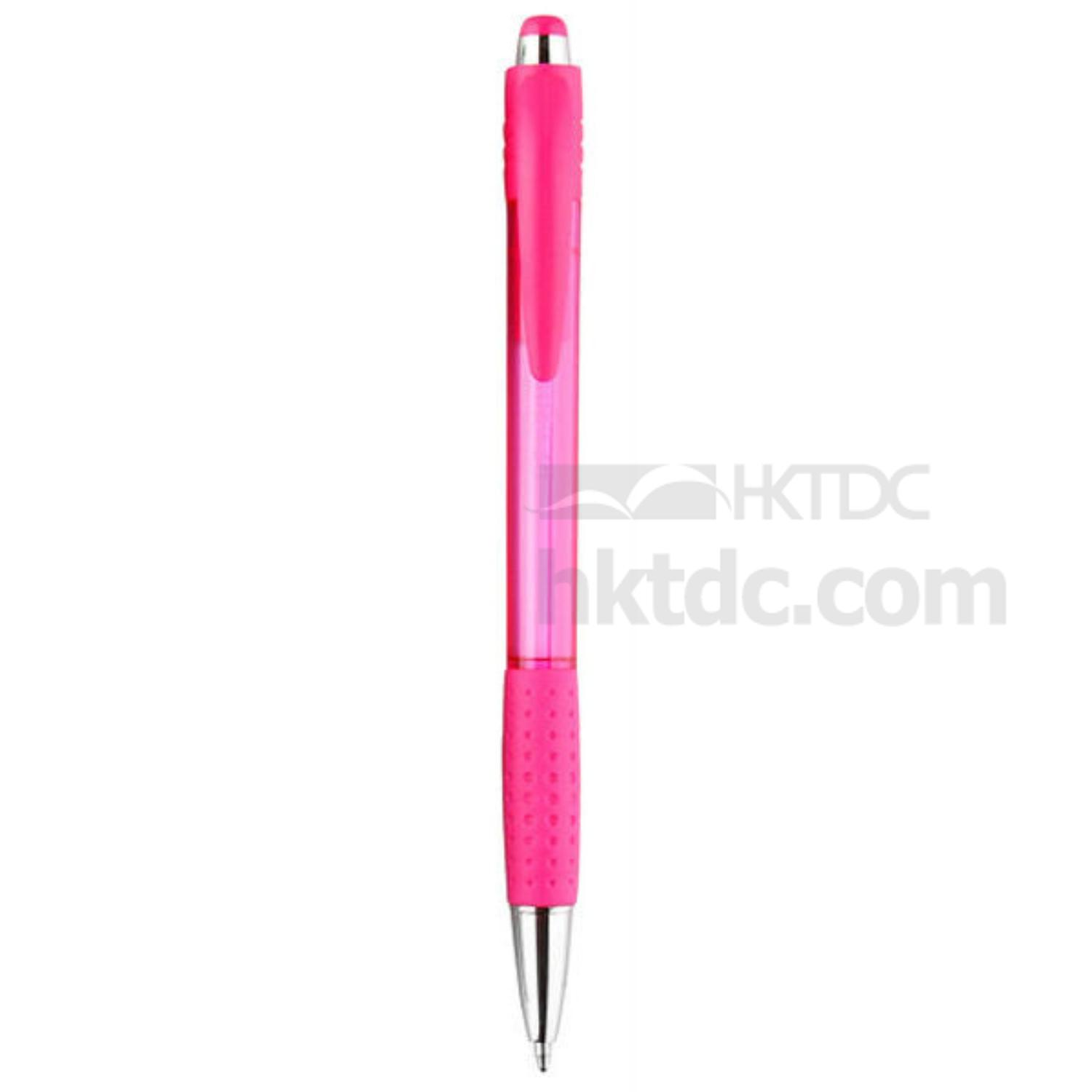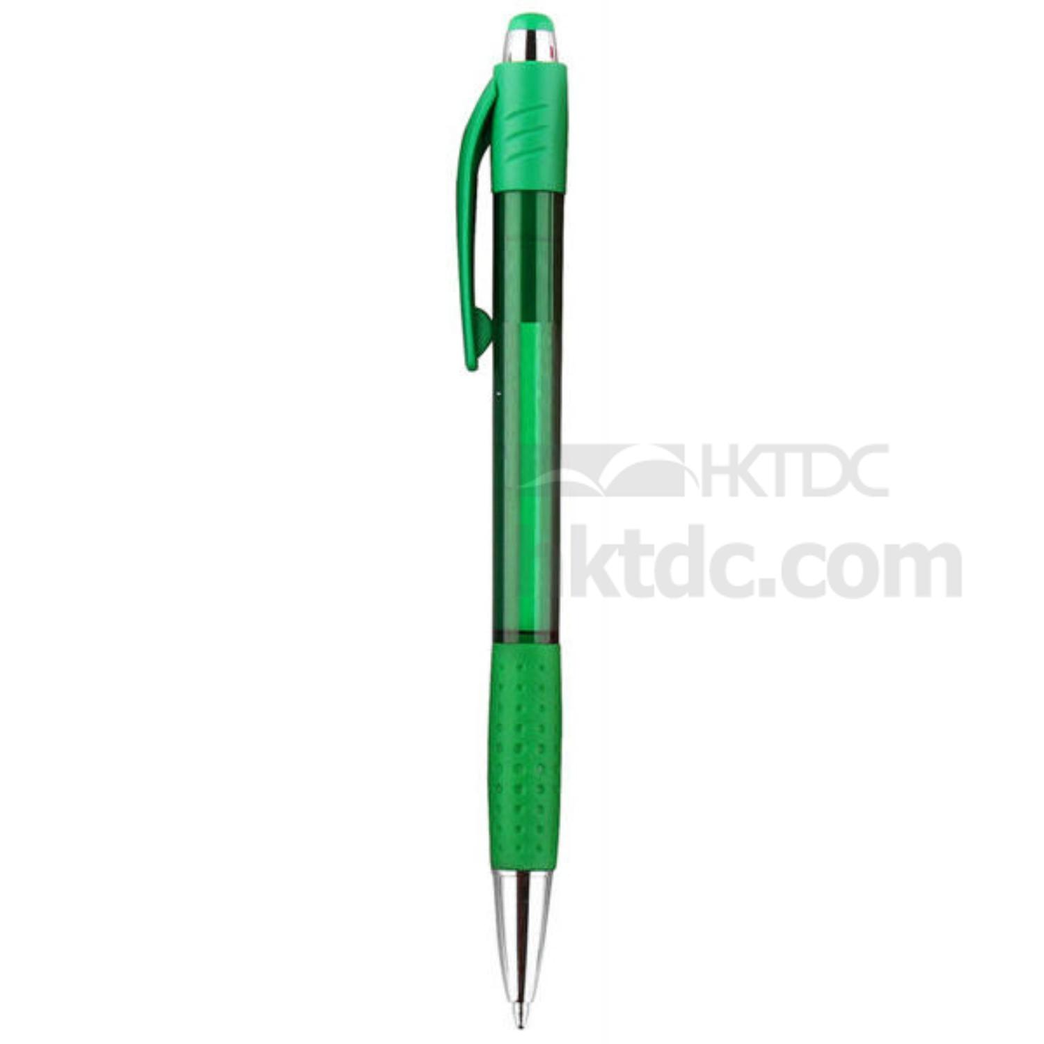 A convenient office essential made in a supreme quality, this retractable ballpoint pen comes with a clear plastic barrel in a bright color and allows printing of logo for a unique touch. It is equipped with a textured rubber grip and a chrome nozzle for hours of smooth writing. Clip it on your schedule book or shirt pocket for unexpected writing needs.