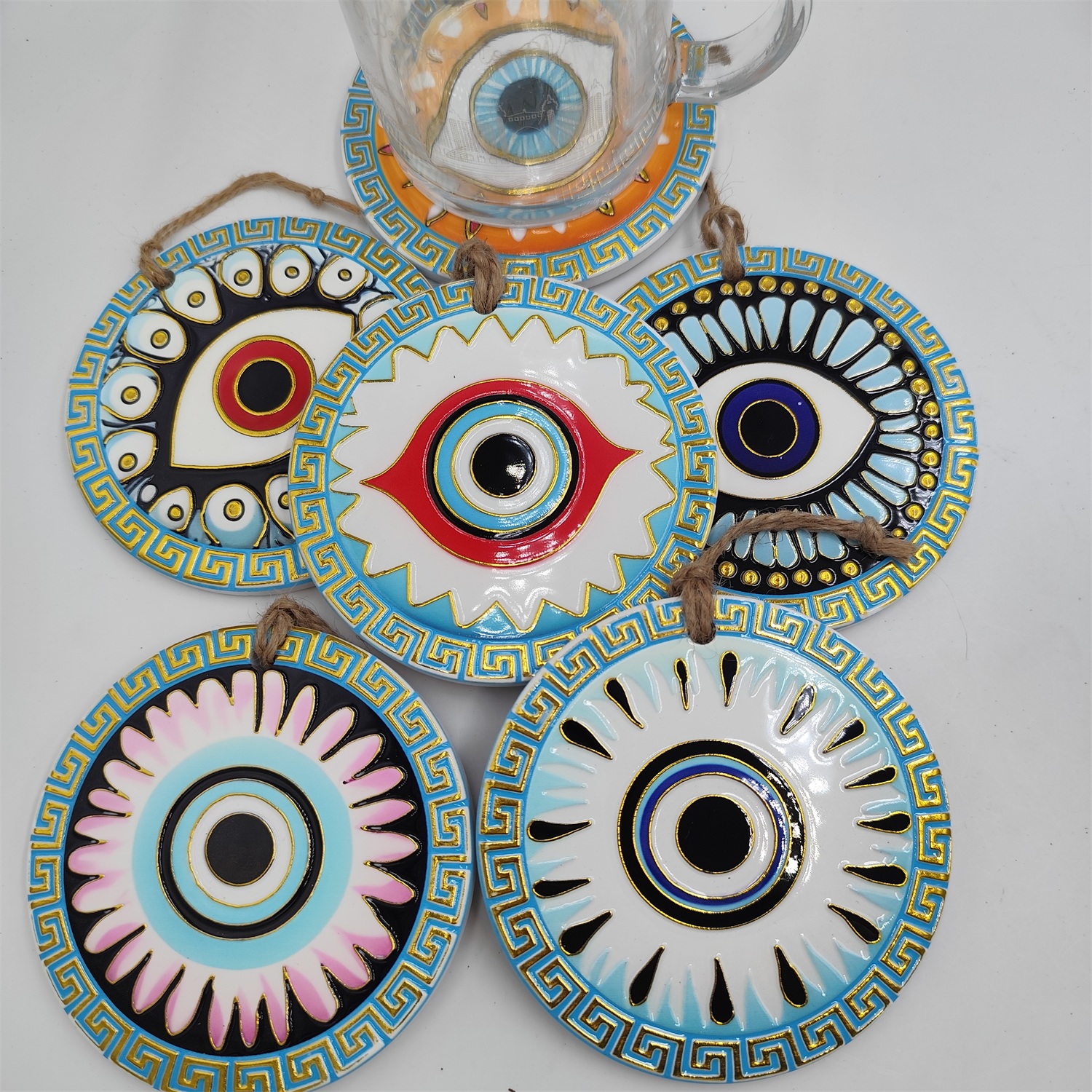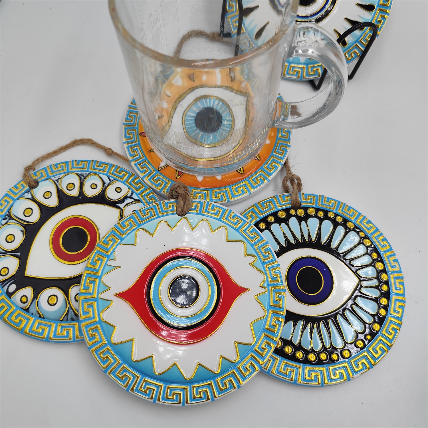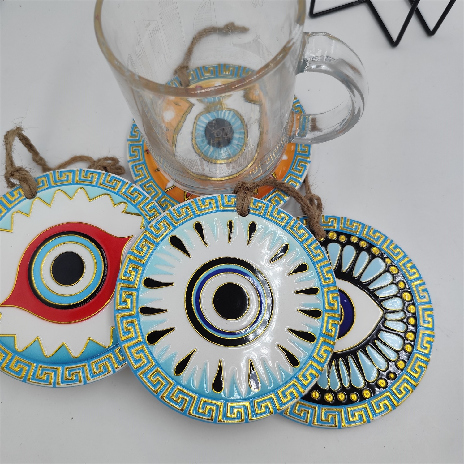Hot Sale Ceramic Evil Eye Coaster Wholesale - Customizable Round Cup Mat with Gold Trim for Home Decor Table Protection