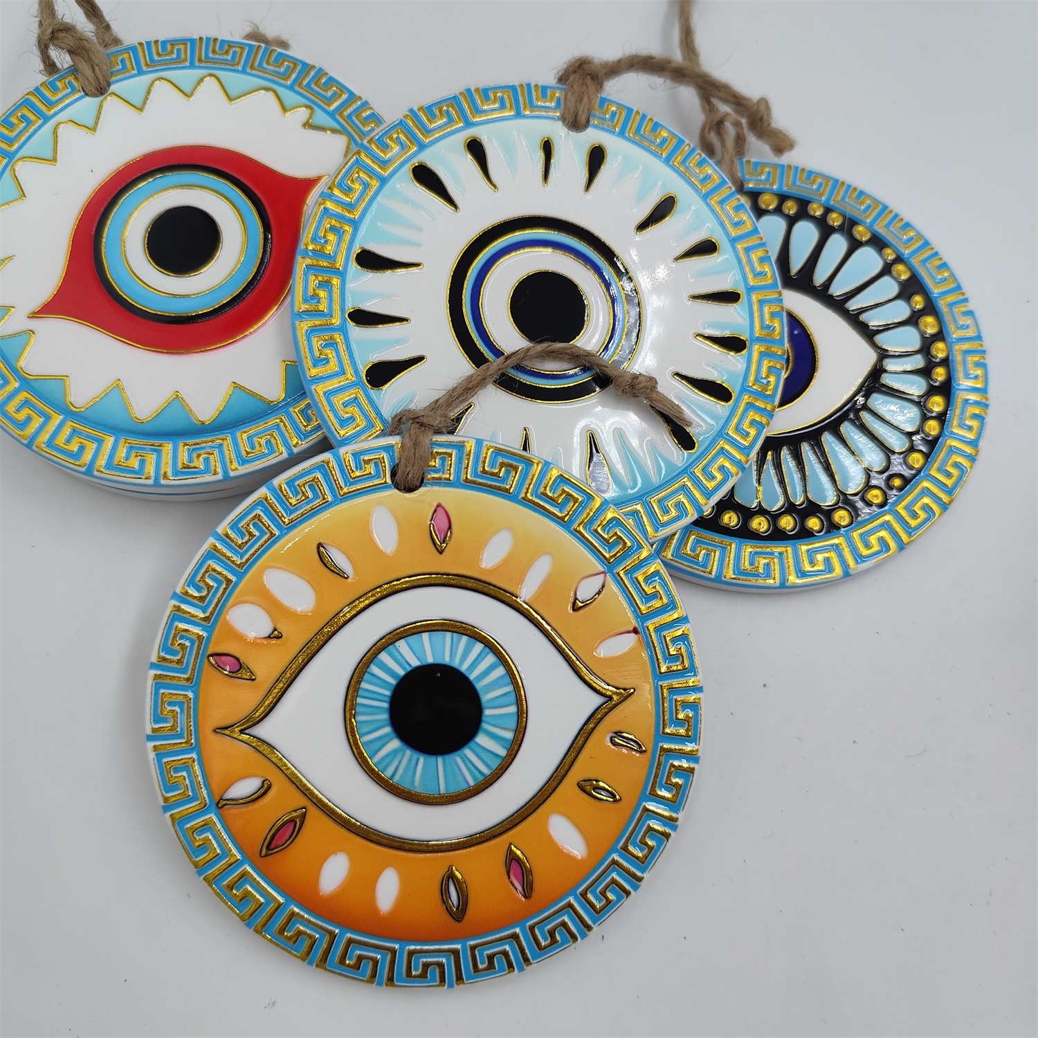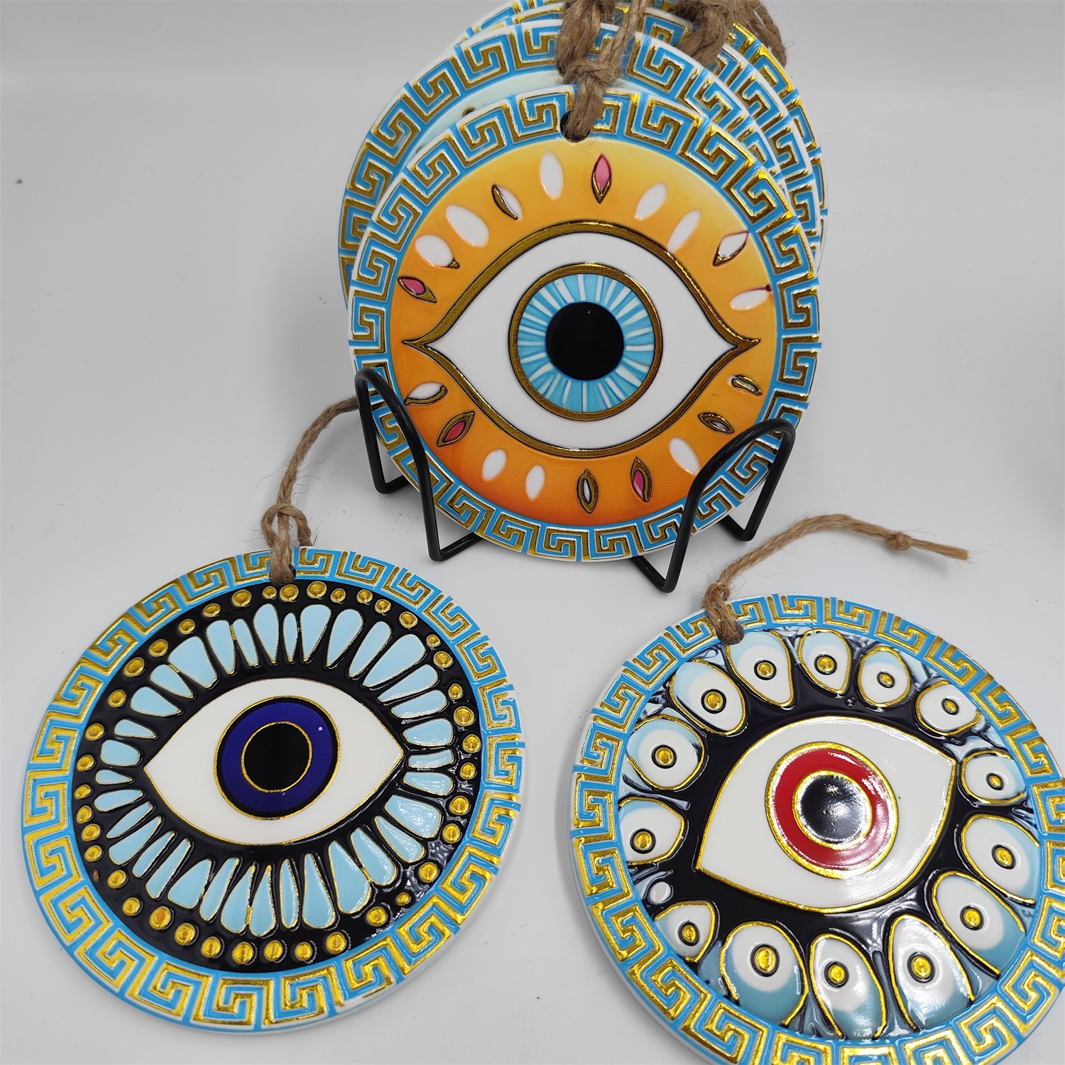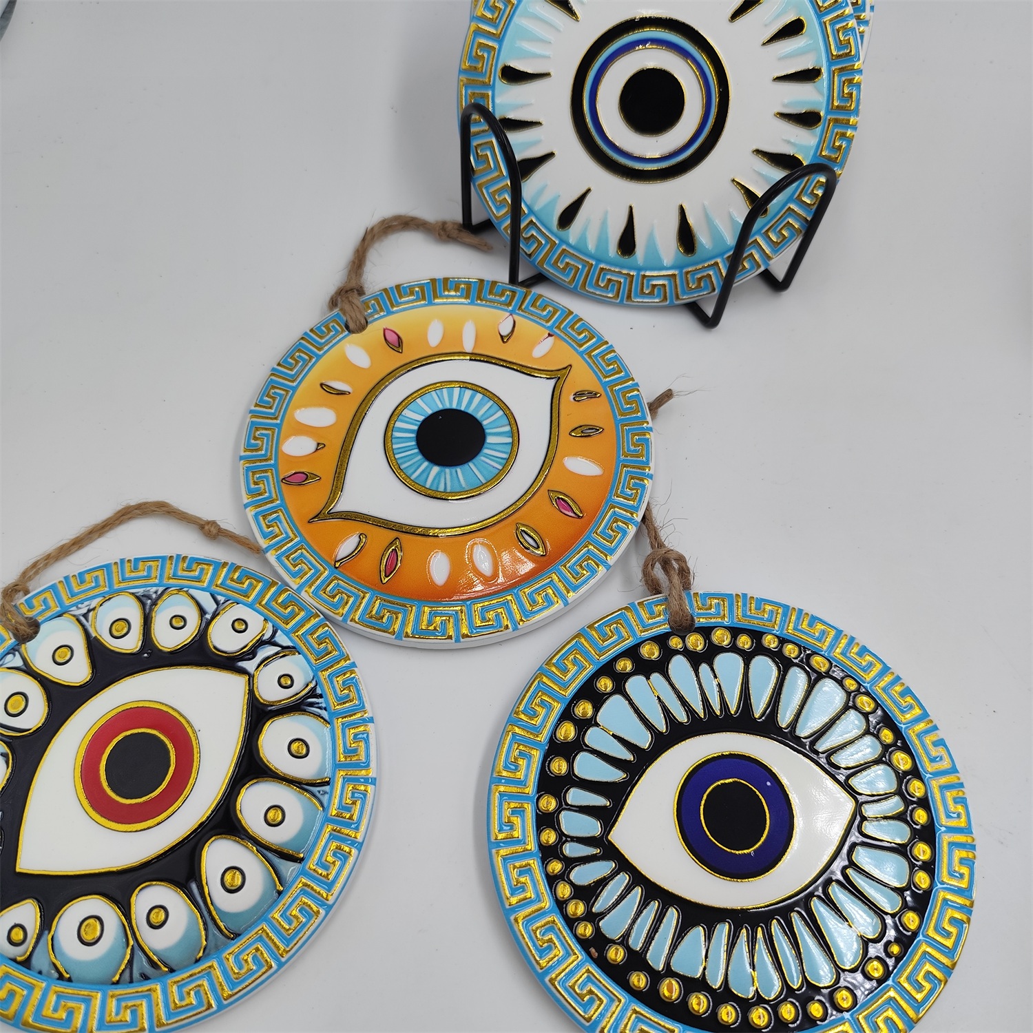 Hot Sale Ceramic Evil Eye Coaster Wholesale - Customizable Round Cup Mat with Gold Trim for Home Decor Table Protection
