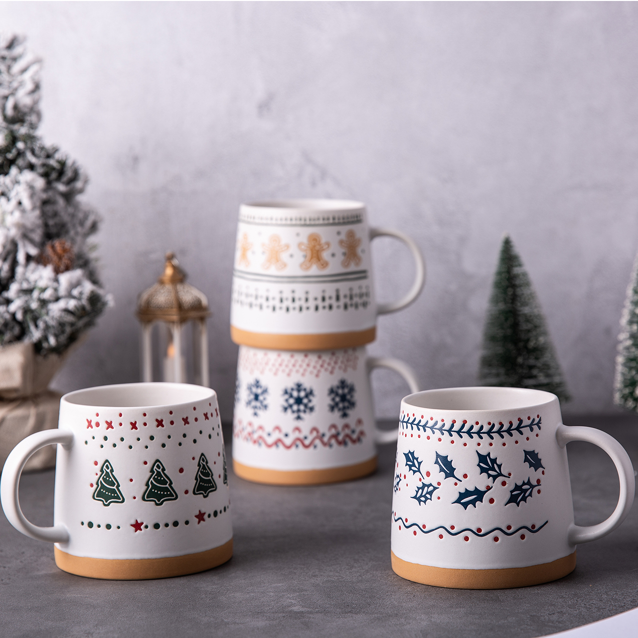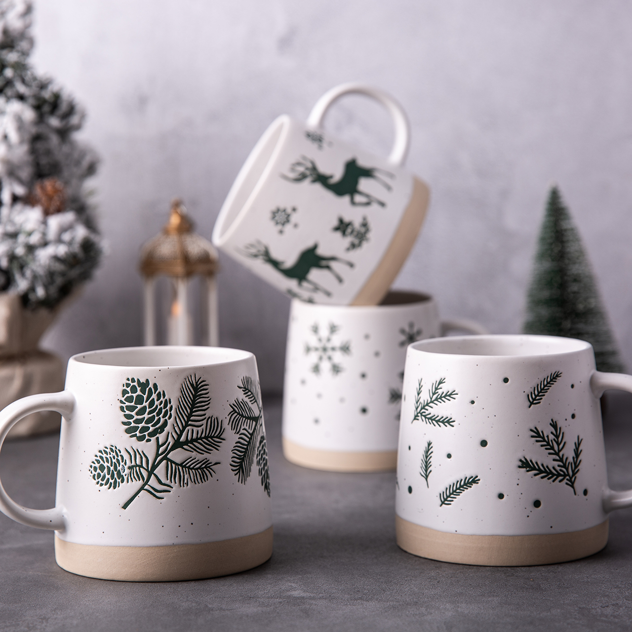 Hot Sale Christmas Ceramic Tree Cup with wax relief for Gifts Home Decoration