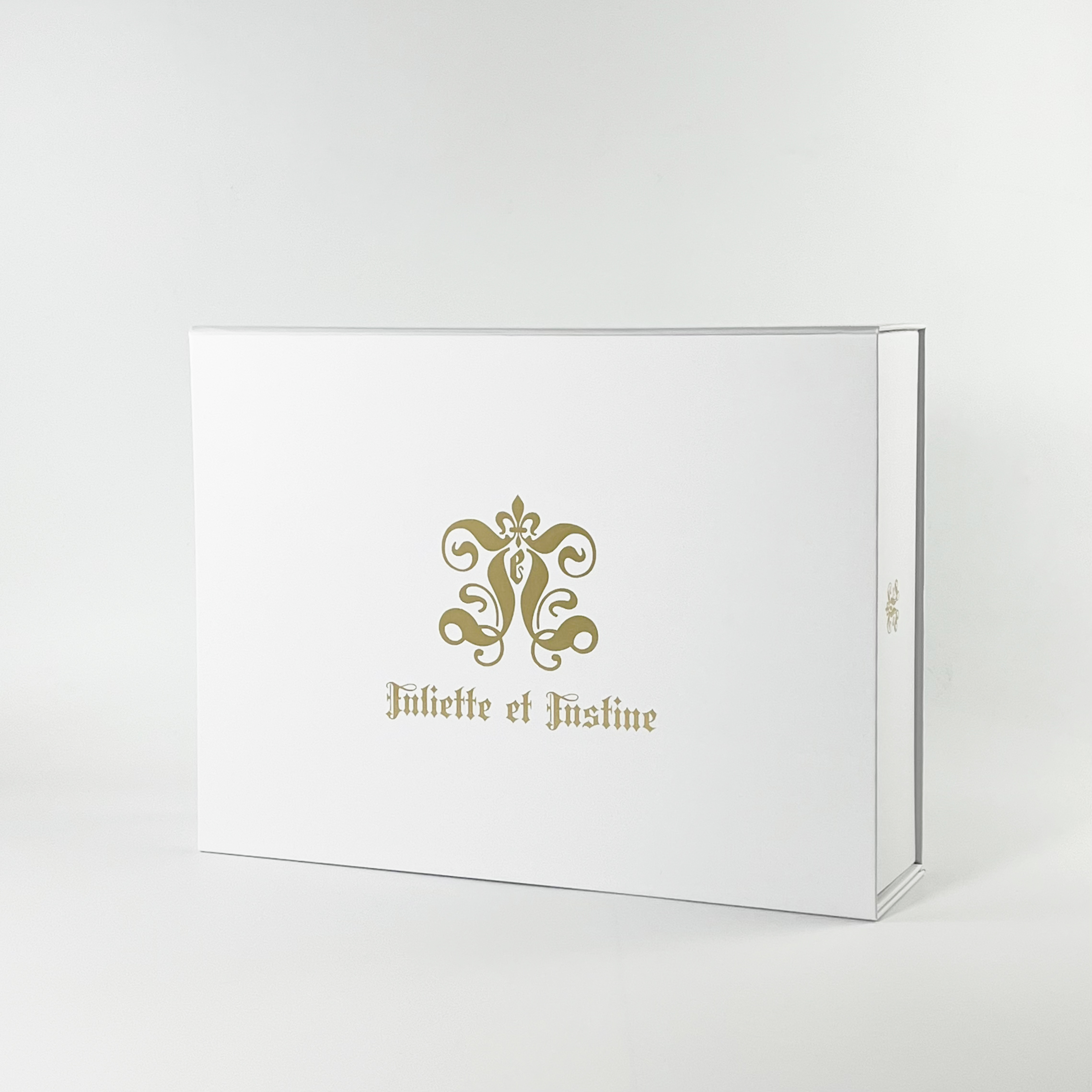 1. Luxe Craft & Sustainable Quality: Constructed from high-grade recyclable rigid paperboard, these boxes deliver robust protection for premium items (like small luxury gifts, confections, or delicate accessories) while aligning with eco-packaging demands. The smooth matte white finish paired with gilded brand motifs exudes upscale elegance, ideal for boutique retail, high-end gifting, or brand-themed packaging scenarios.