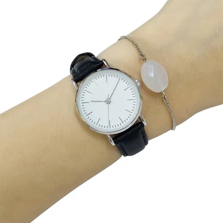 Hot Sale Customized 28mm Black PU Small Alloy case Japan Movt Quartz Women Watch