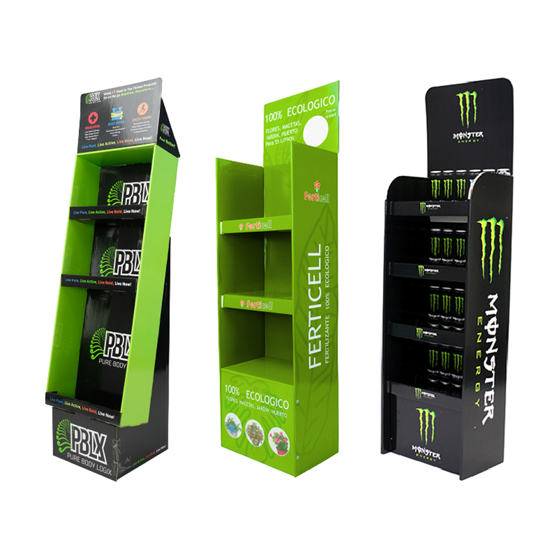 Hot Sale Customized Corrugated Cardboard Energy Drink Beverages Display Stand Racks Cardboard Bottle Floor Display Stands