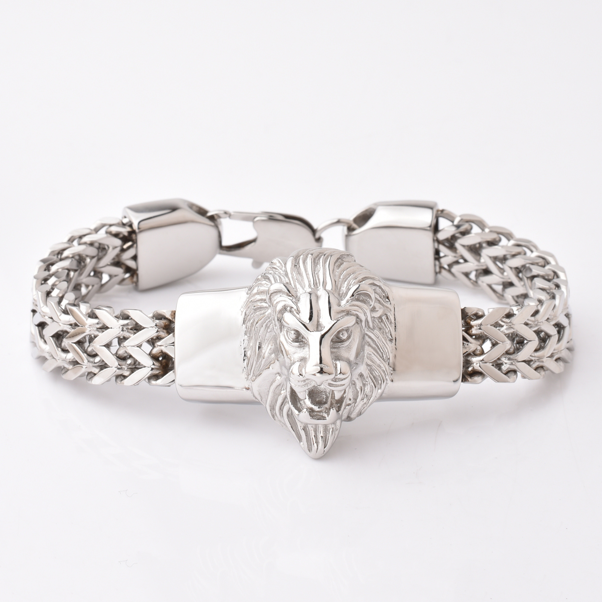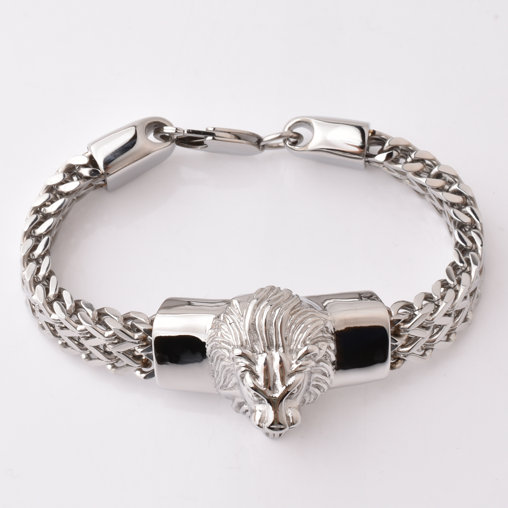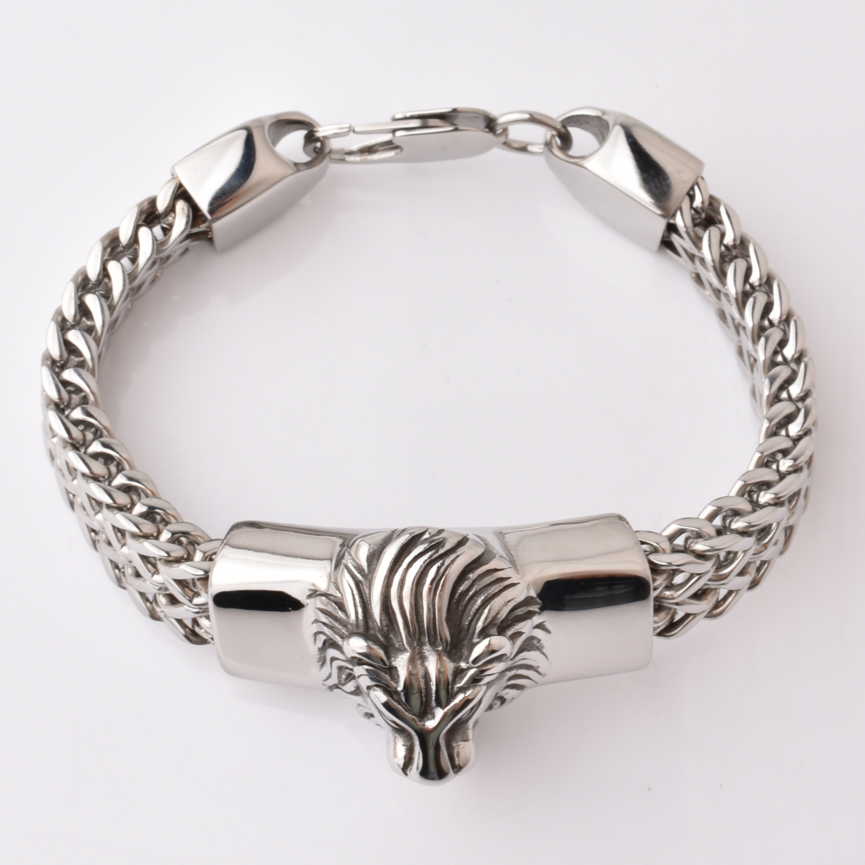 Hot Sale Lion Head Design Smart Style Plain Stainless Steel Bracelet Handmade Bracelets Solid Steel Bracelets