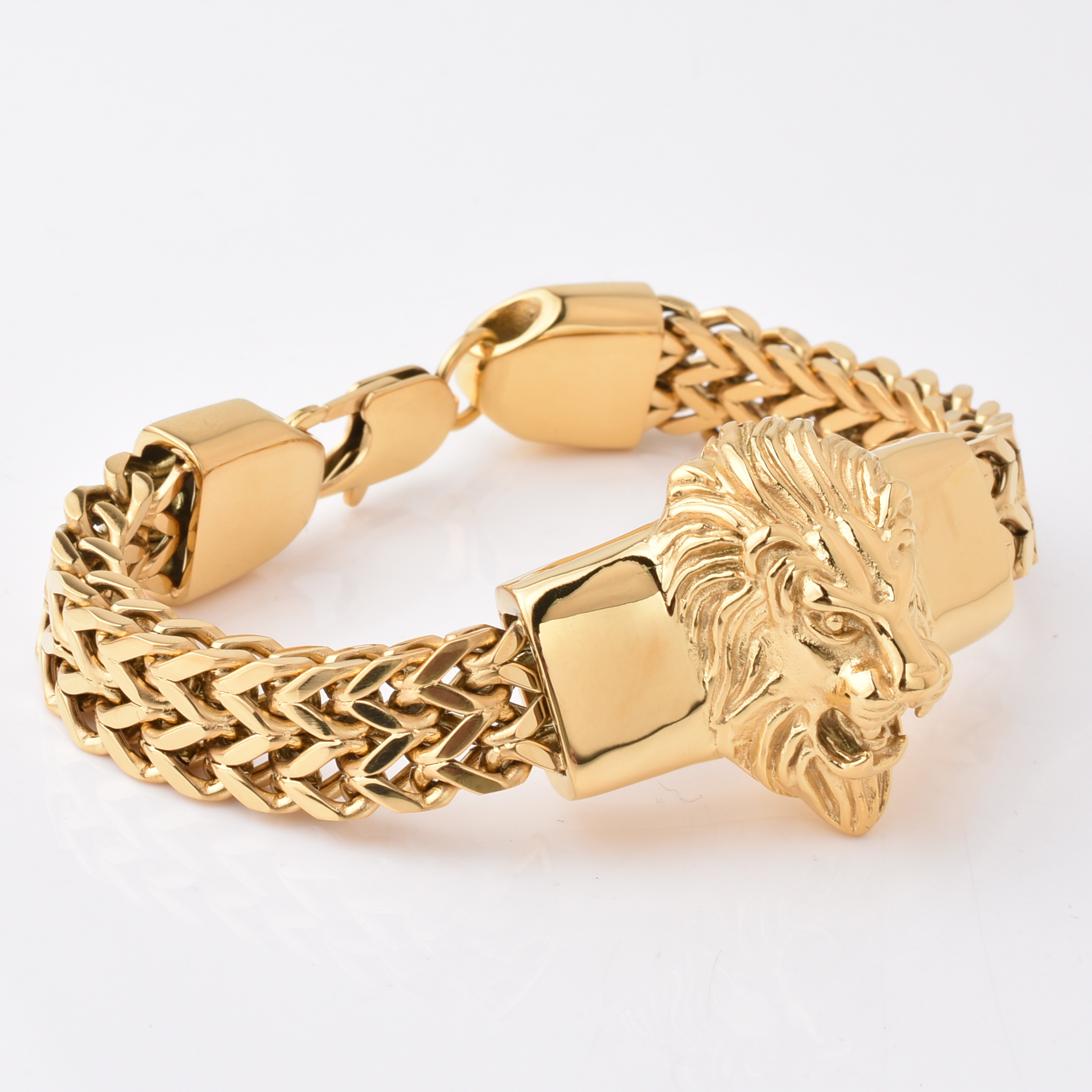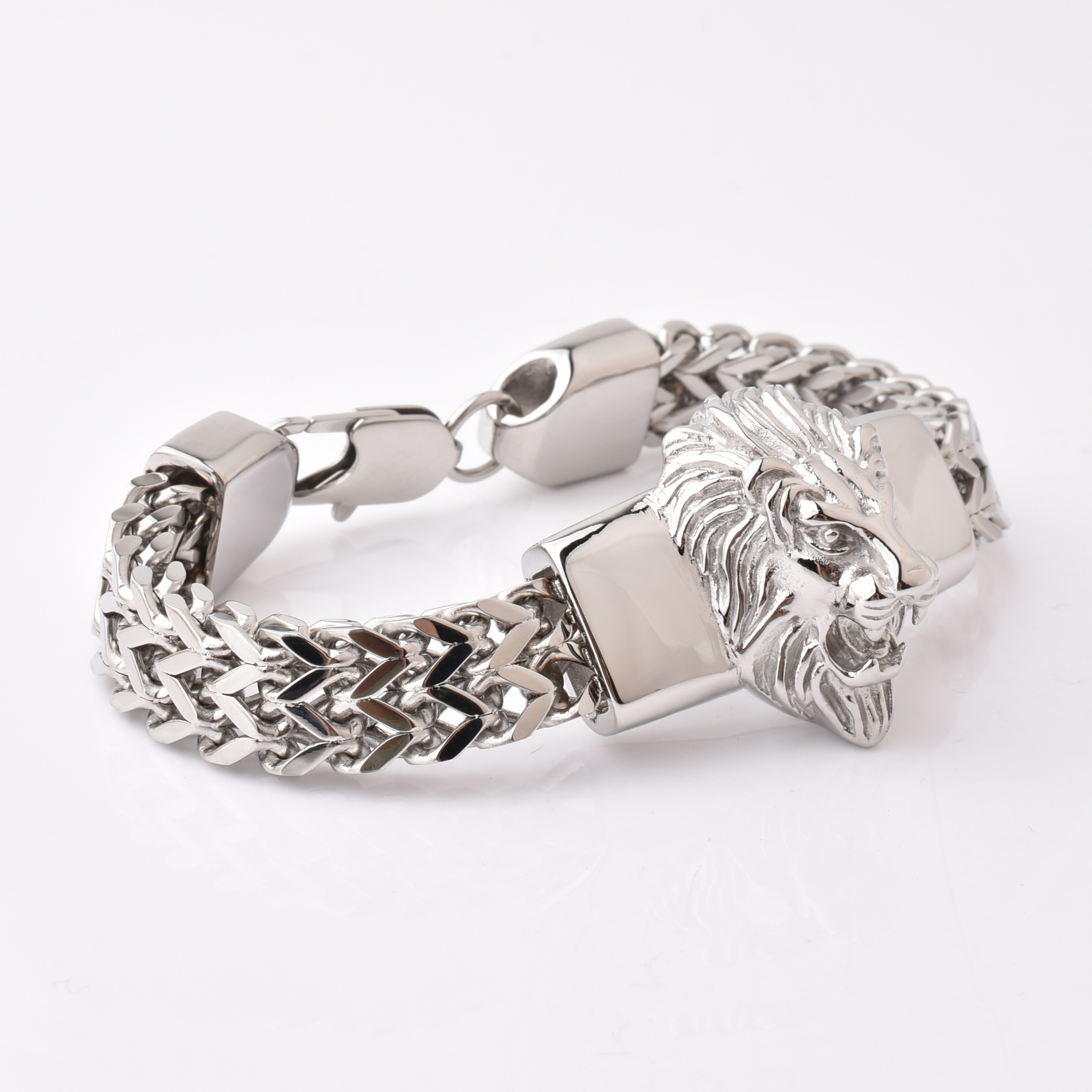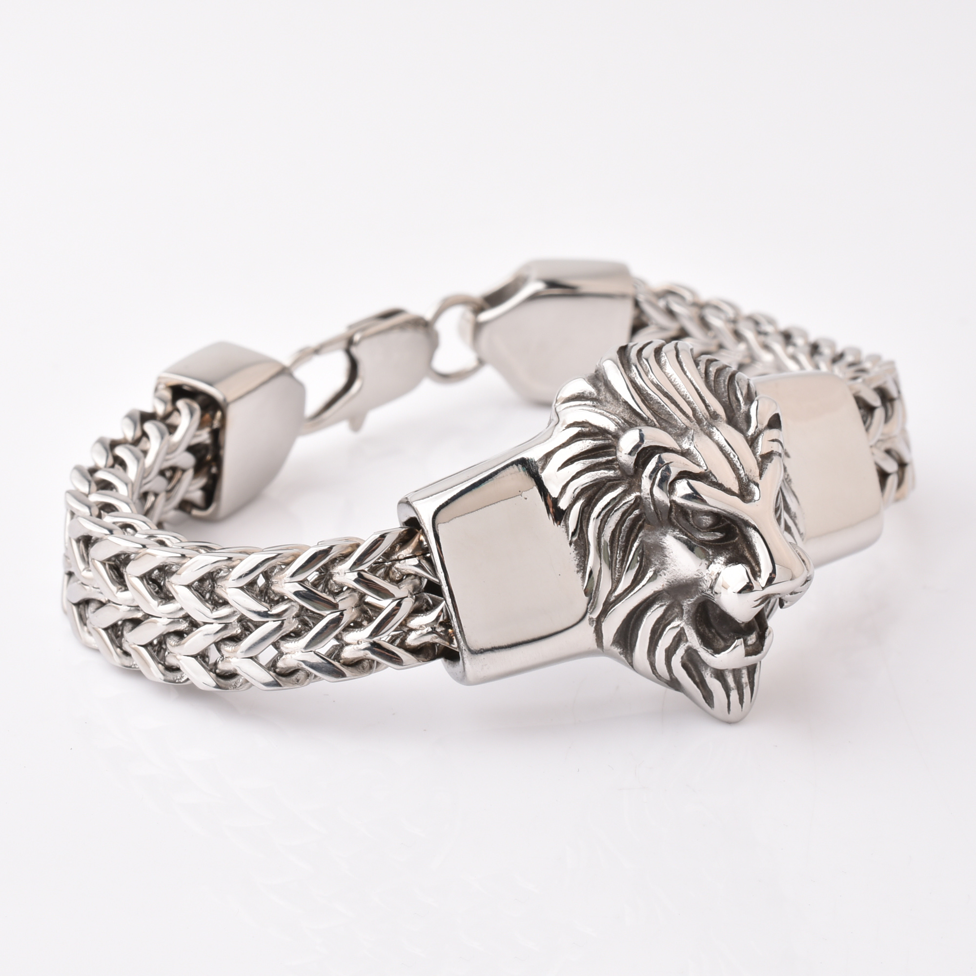 Hot Sale Lion Head Design Smart Style Plain Stainless Steel Bracelet Handmade Bracelets Solid Steel Bracelets