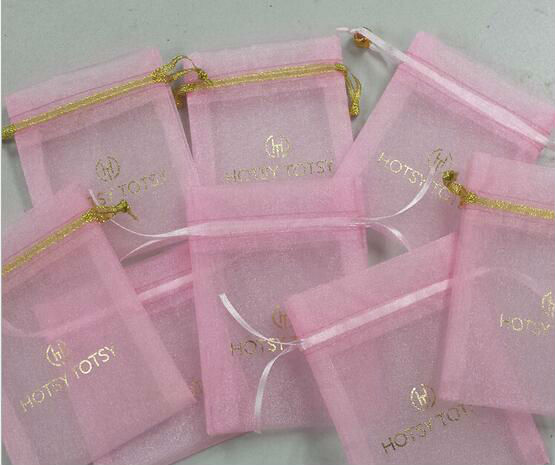 1.Material: 1C organza material + silk printing logo + drawstring