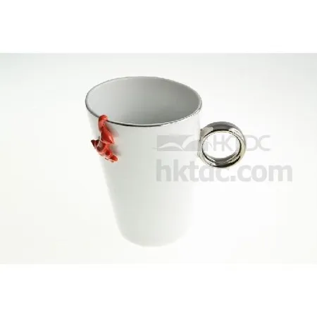 Hot Sale Porcelain Modern Style White Color Ring Mug With Frog Figure