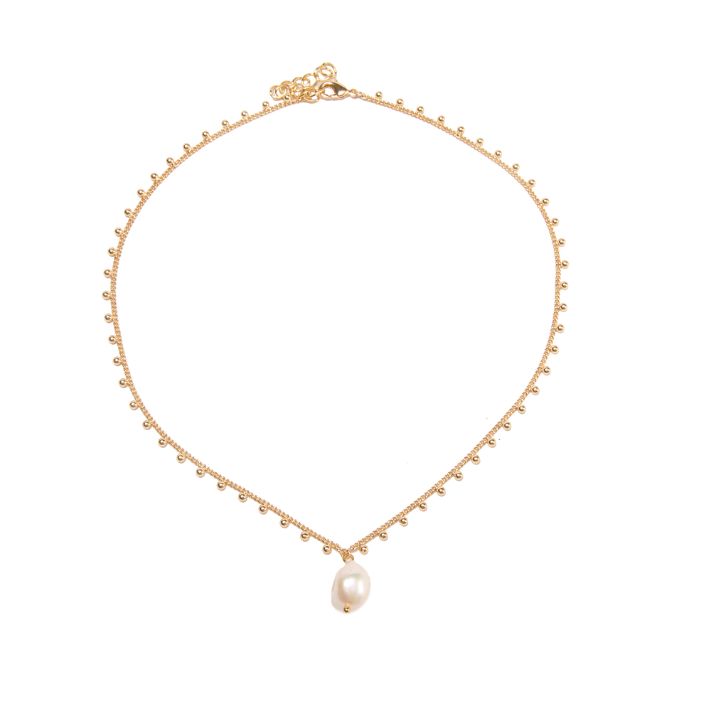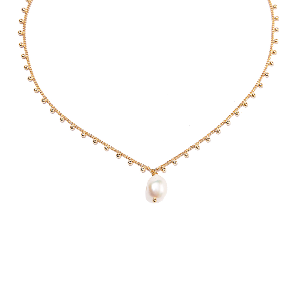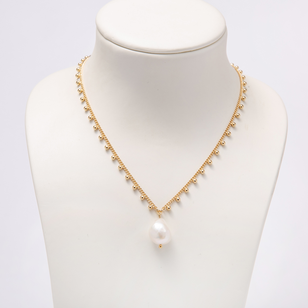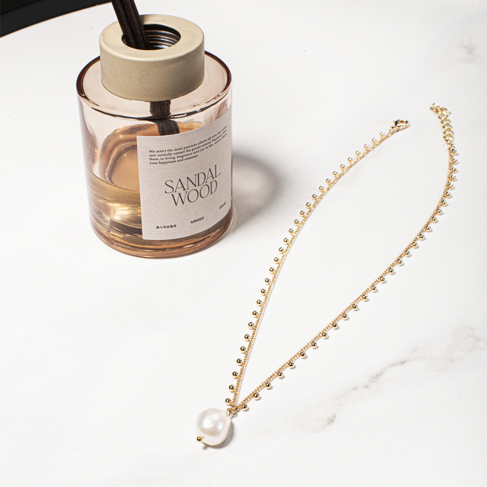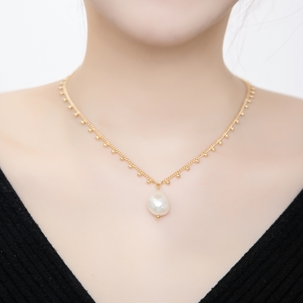 Hot Sale Simple Round Bead Chain Brass Necklace Elegant Shaped Freshwater Pearl Superimposed Bozai Necklace For Women Girls