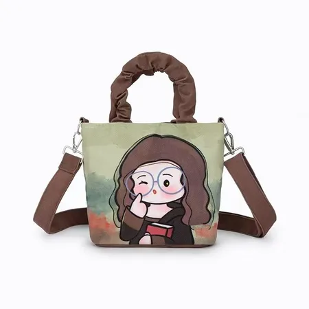 Hot Selling Custom Large Capacity Canvas Tote Bag for Women Reusable Woven Shoulder Bag Cartoon for School Tutoring Documents