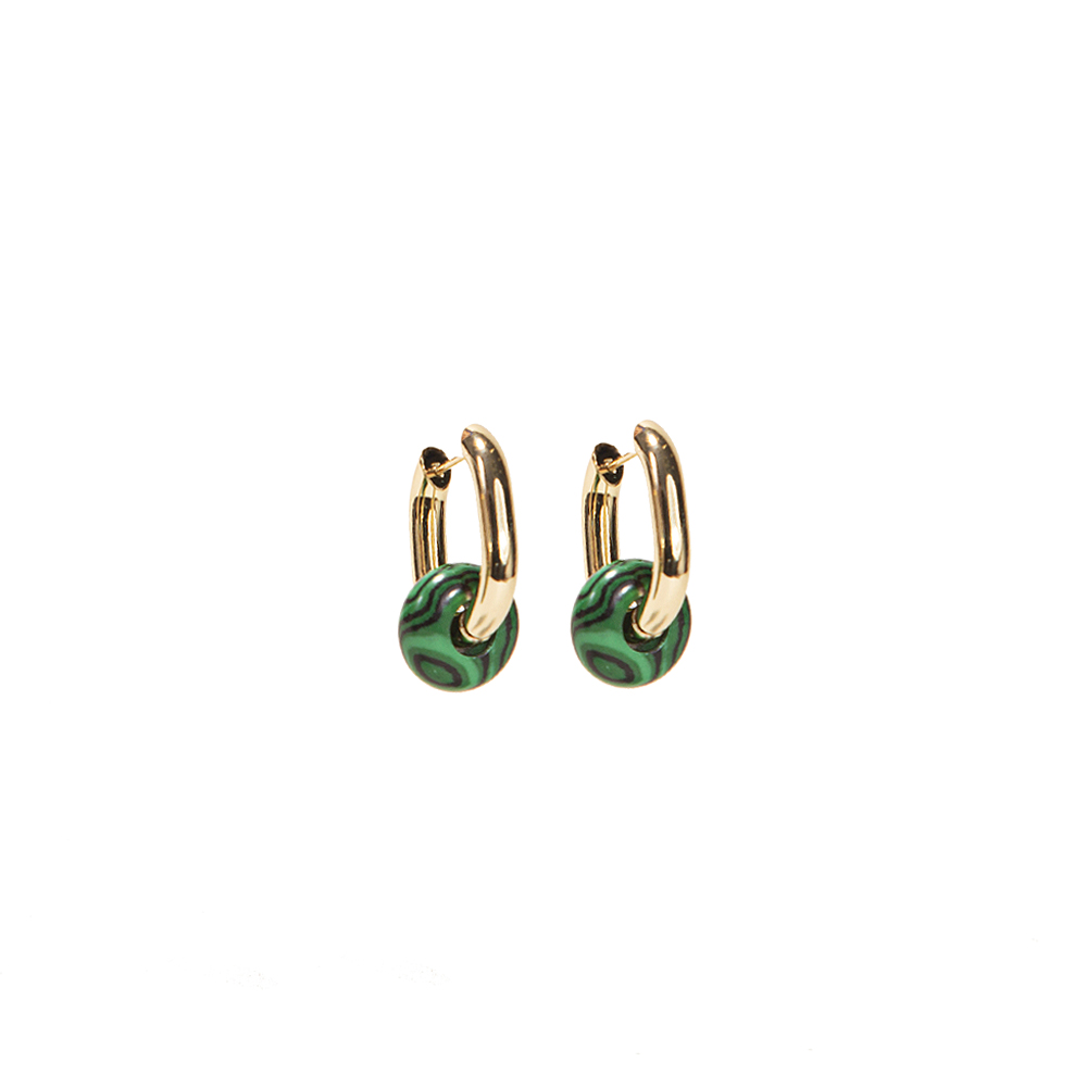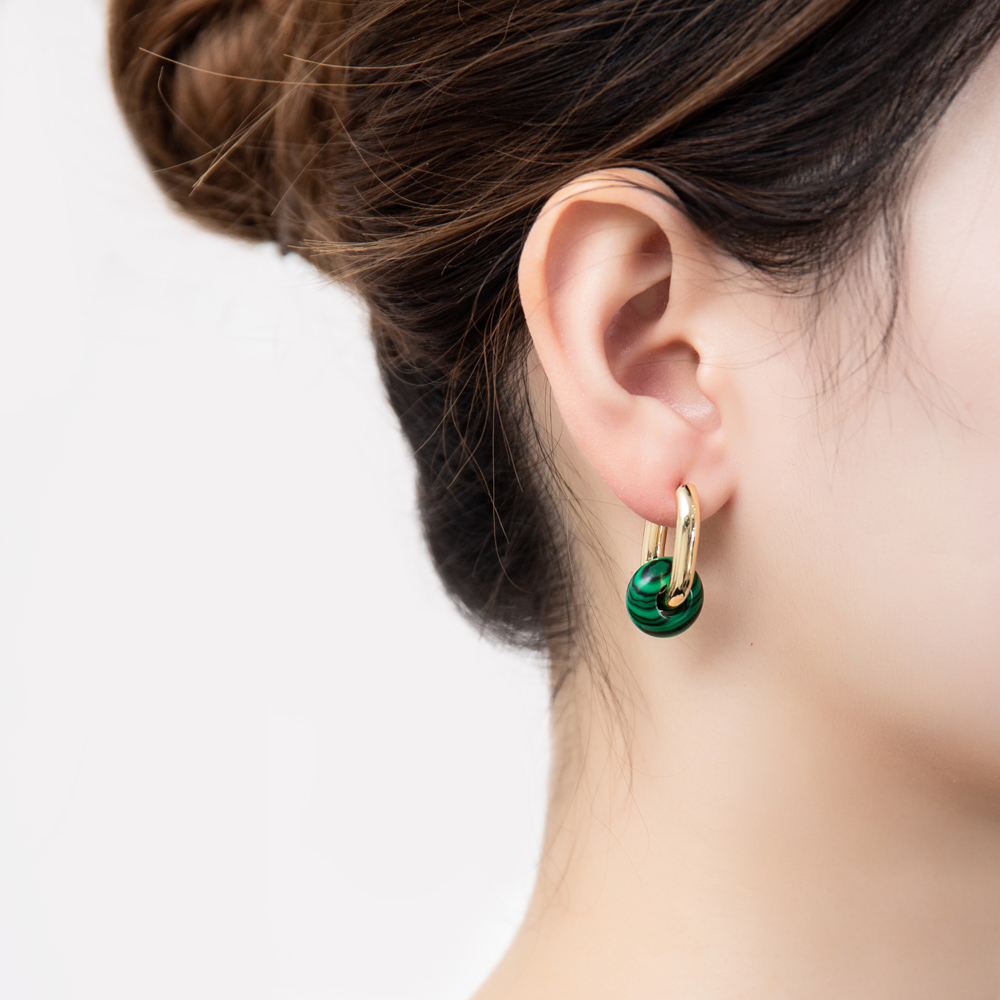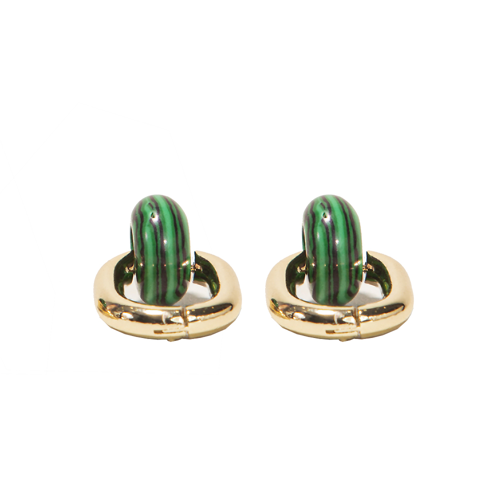 Hot Selling Green Natural Stone Stainless Steel 23K Real Gold Plated Pin Trendy Geometric Jewelry Earrings For Women Girls