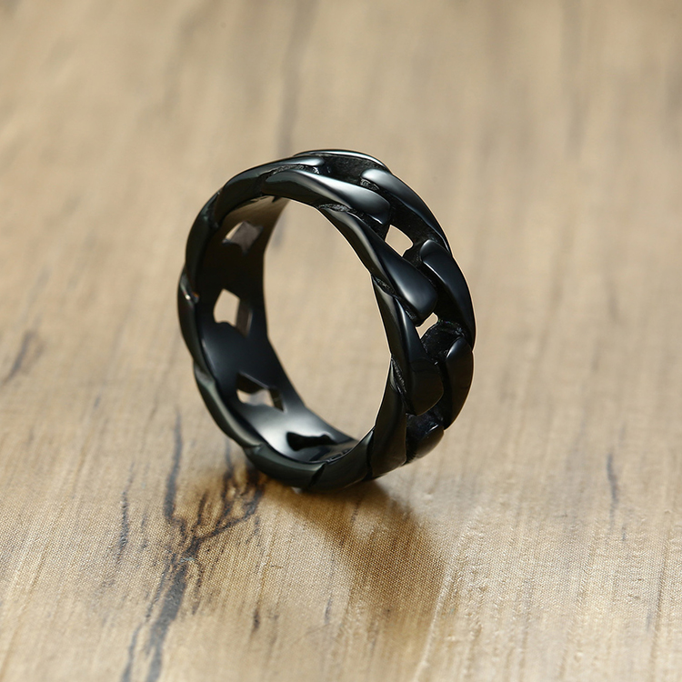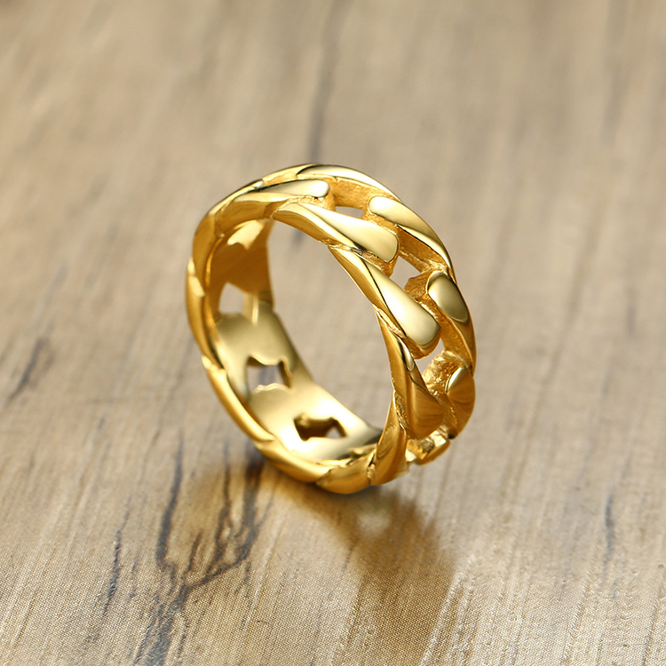 Hot Selling Hip Hop Simple Gold Flat Chain Shaped Rings Cuban Link Chain Finger Rings for Men and Women