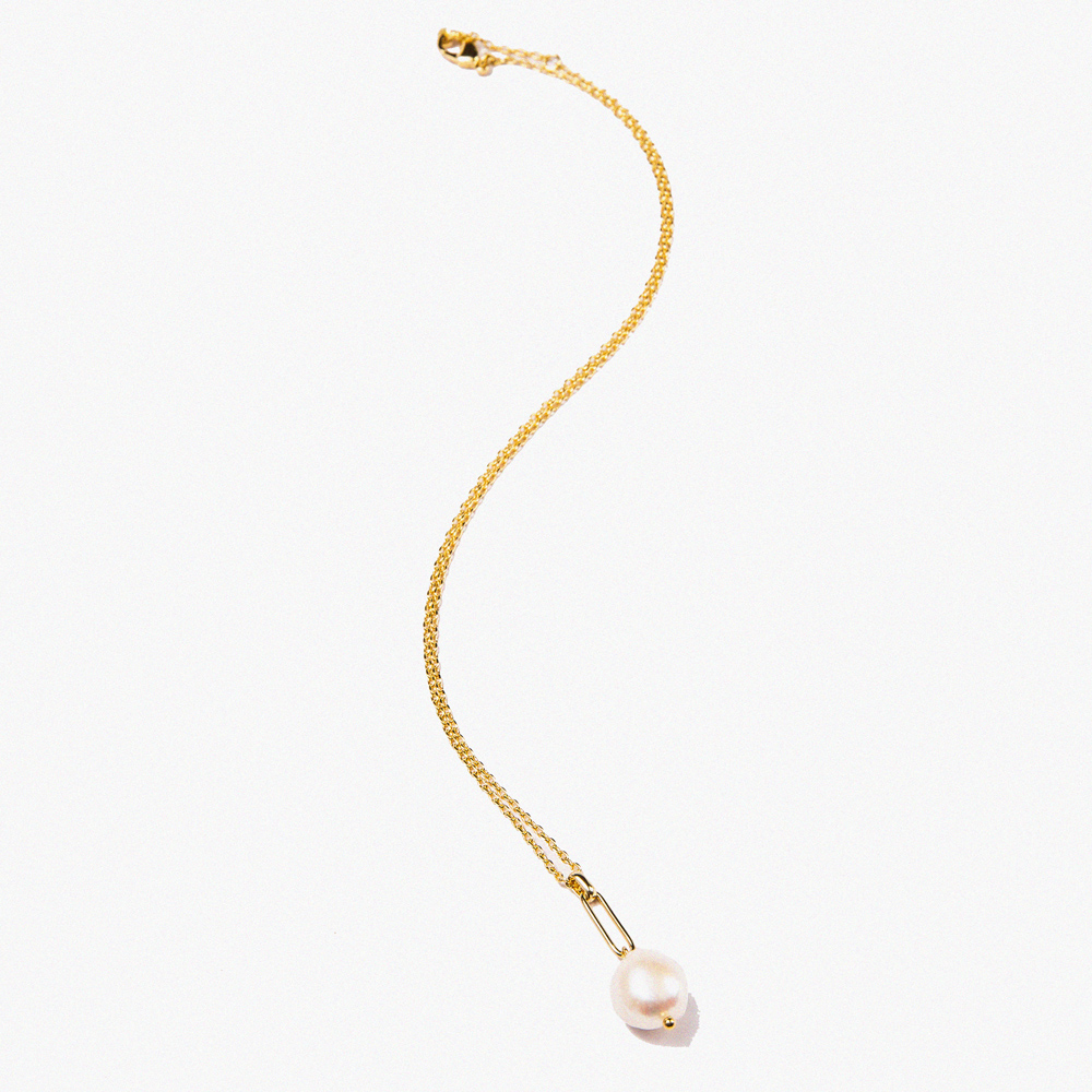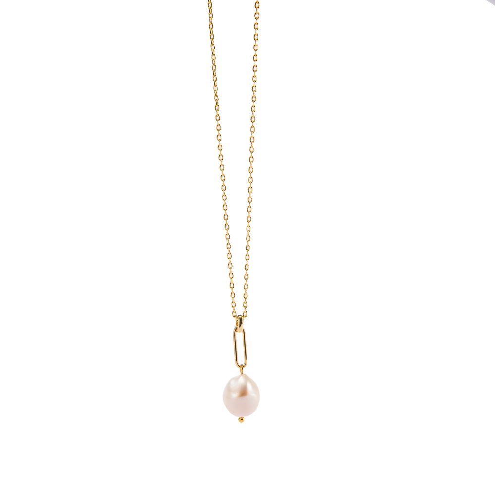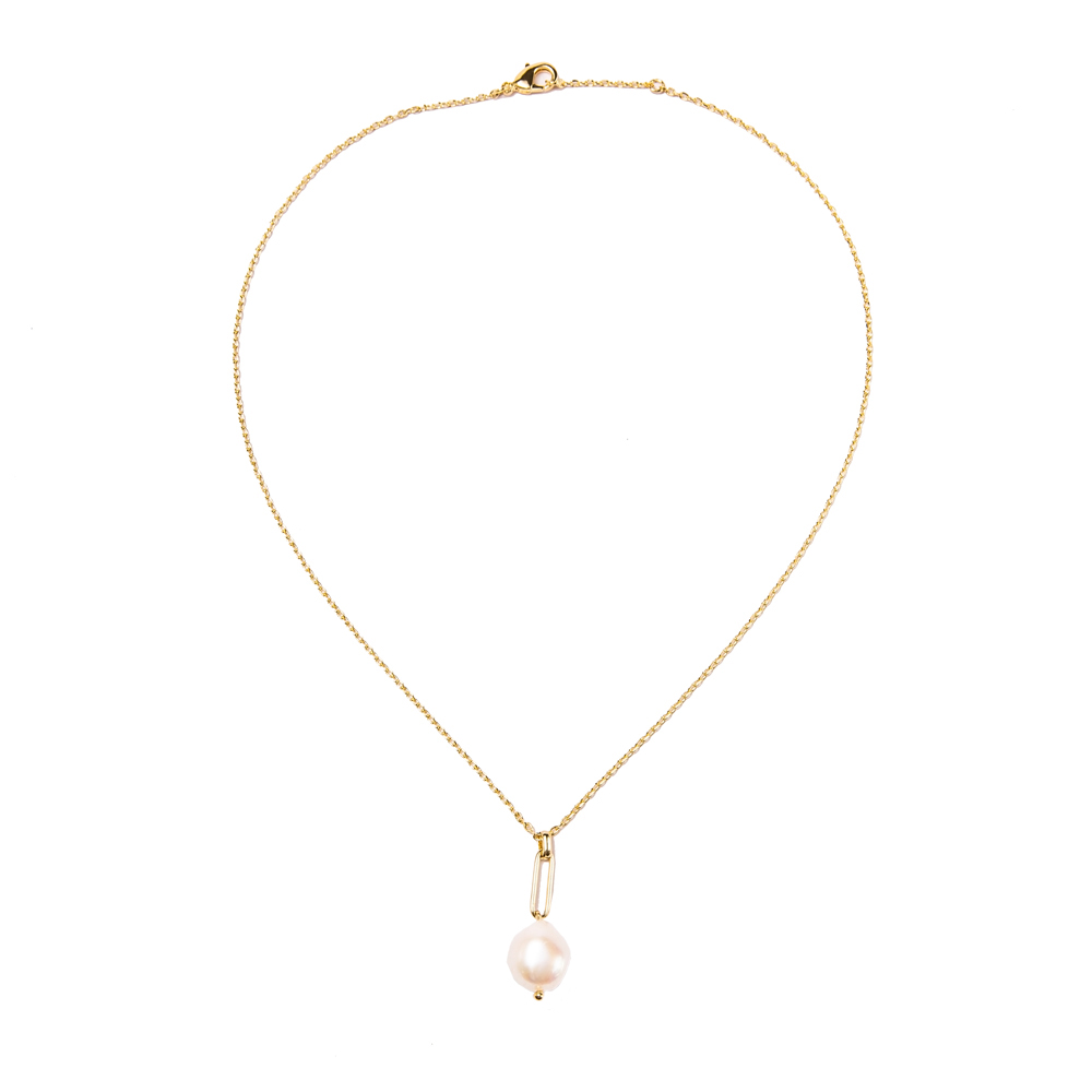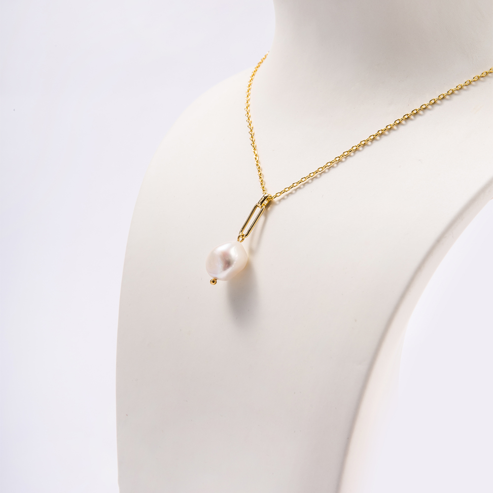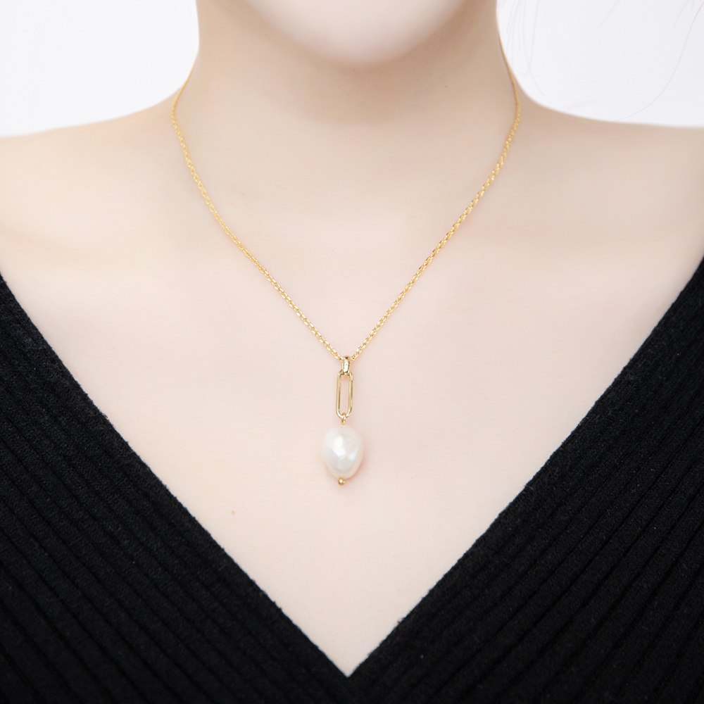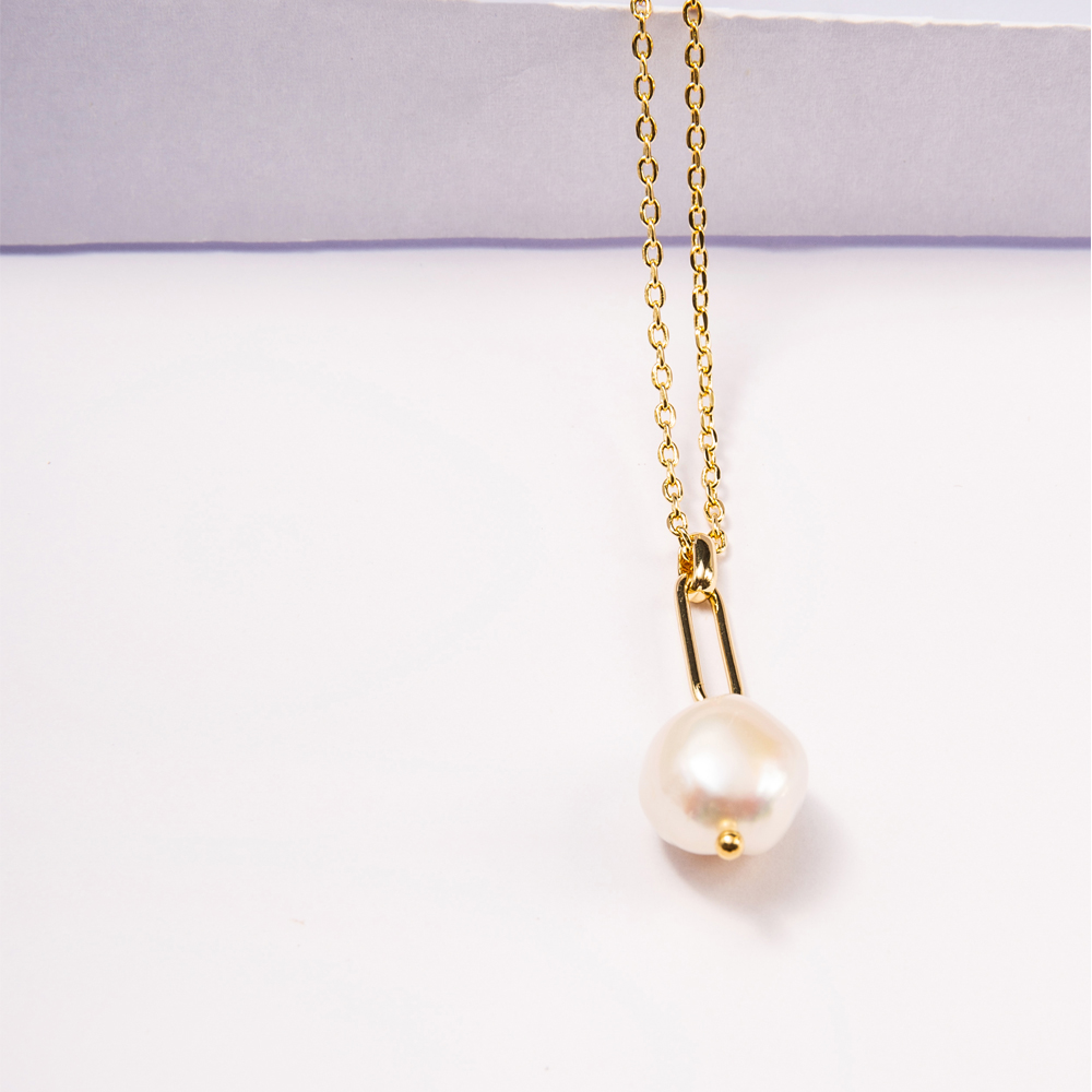 Hot Selling New Design Fashion Real Gold Lock Link Chain Delicate Simple Natural Pearl Necklace Jewelry