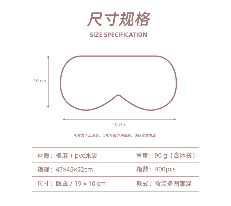 Material: cotton and linen + PVC ice bagSize: 19*10cm