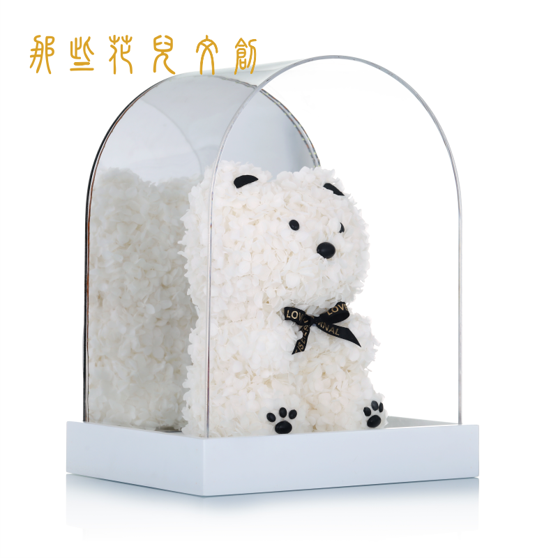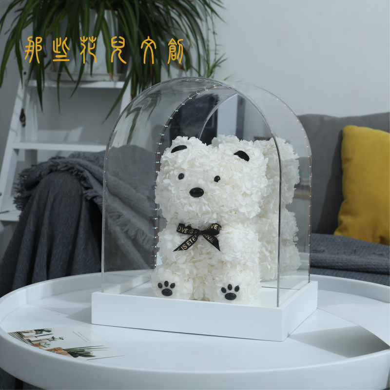 * Preserved Hydrangeas Cute Panda Doll in Luxury Acrylic Gift Box