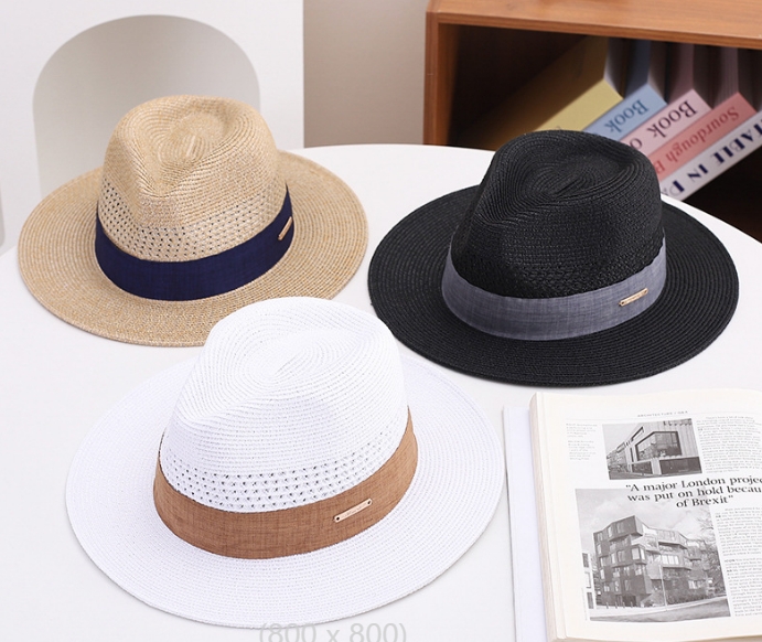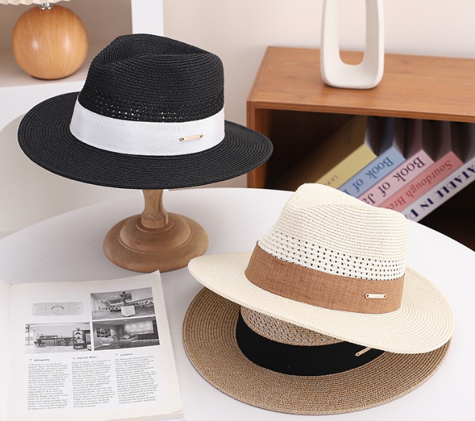 Hot-selling straw hat women's summer beach sunshade flat top hat, hollow top woven sun protection hat, casual hat, breathable