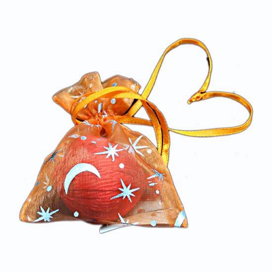 This pouch comes in different colors, including orange and white. It features star and moon patterns, showcasing a touch of sophistication. This simple yet gorgeous pouch makes a great gift packaging choice.