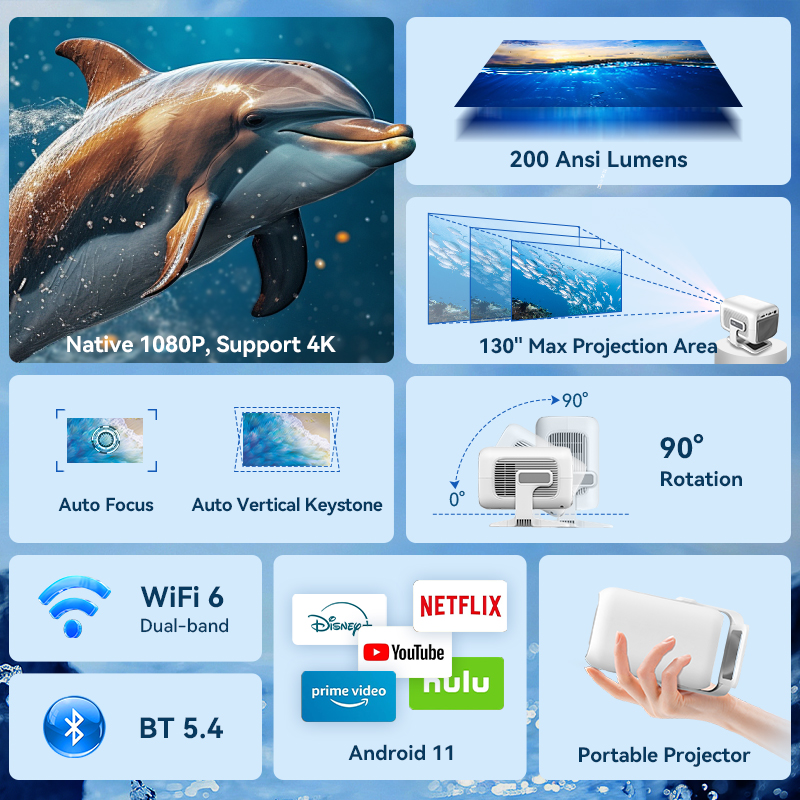 Hotack X3AQ 2000 High Lumens 1080P Google TV Projector Home Theater Video Projecteur Smart Android Mini Proyector 4k